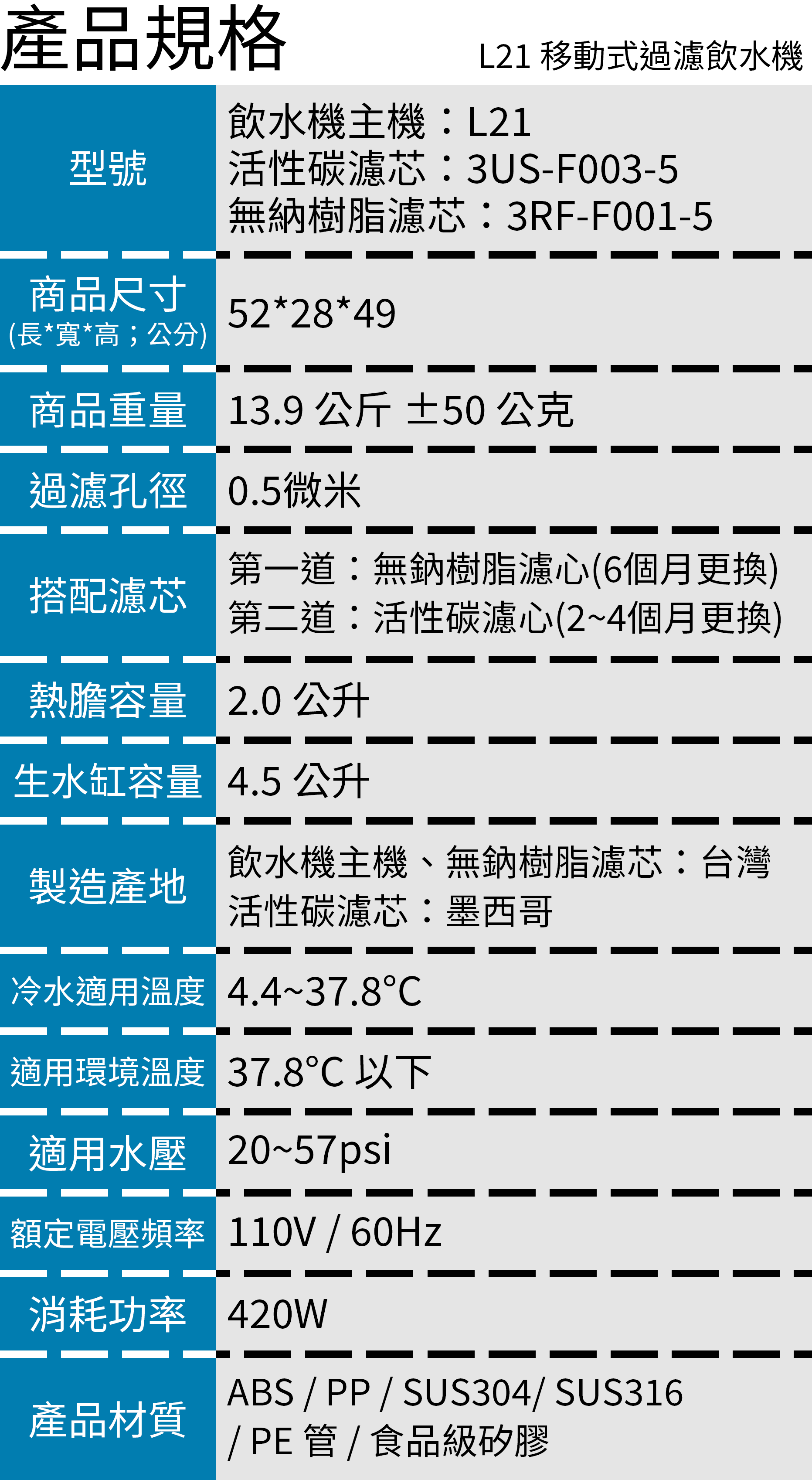 冷熱出水皆經過濾淨,飲用與沖調食物飲品皆宜