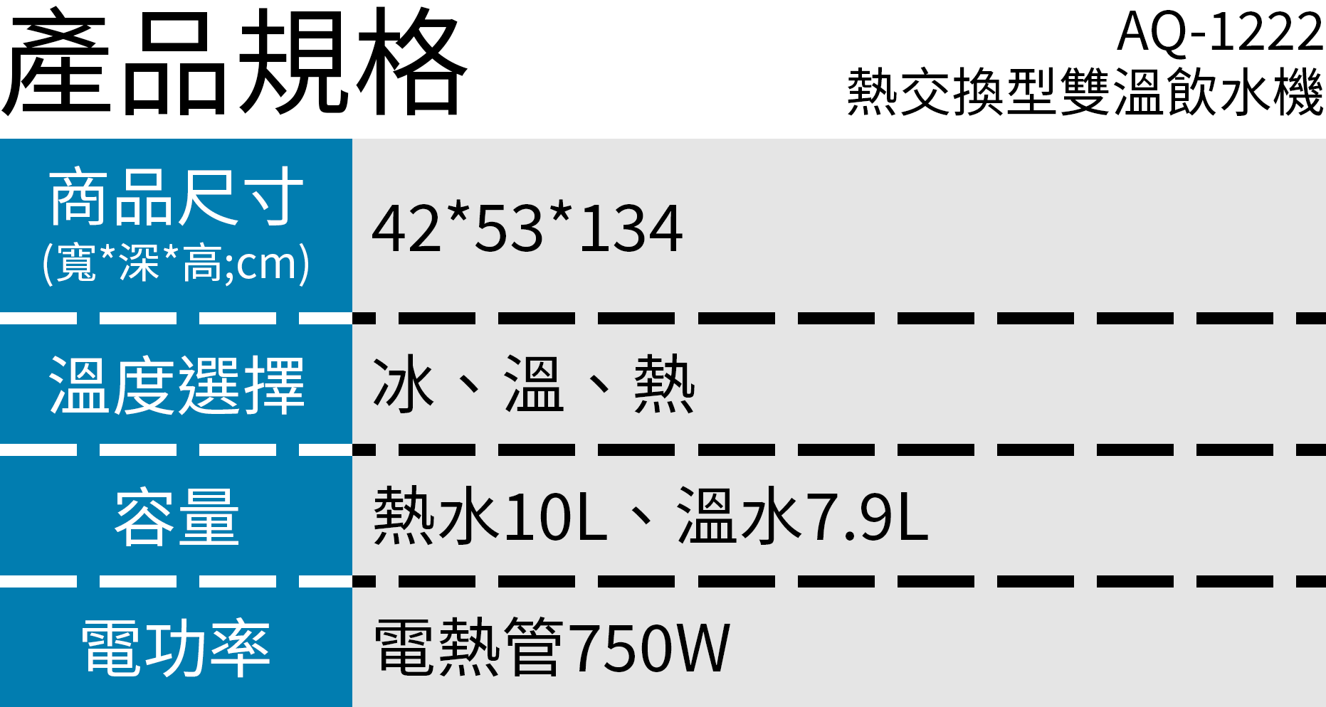 Aquatek沛宸 AQ-1222 熱交換型雙溫飲水機 -RO冷熱雙溫落地型