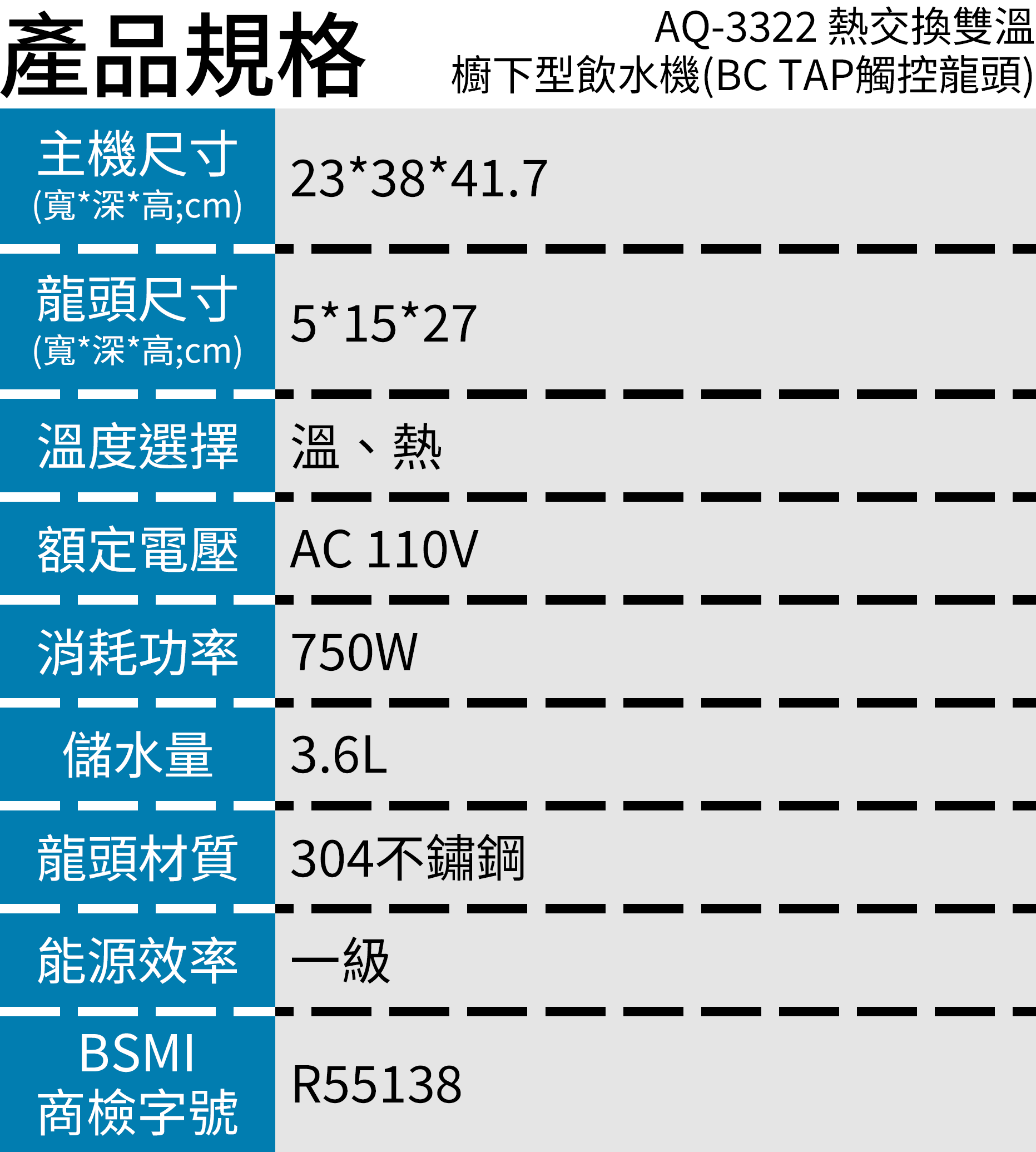 Aquatek沛宸 AQ-3322 熱交換雙溫櫥下型飲水機(BC TAP觸控龍頭)