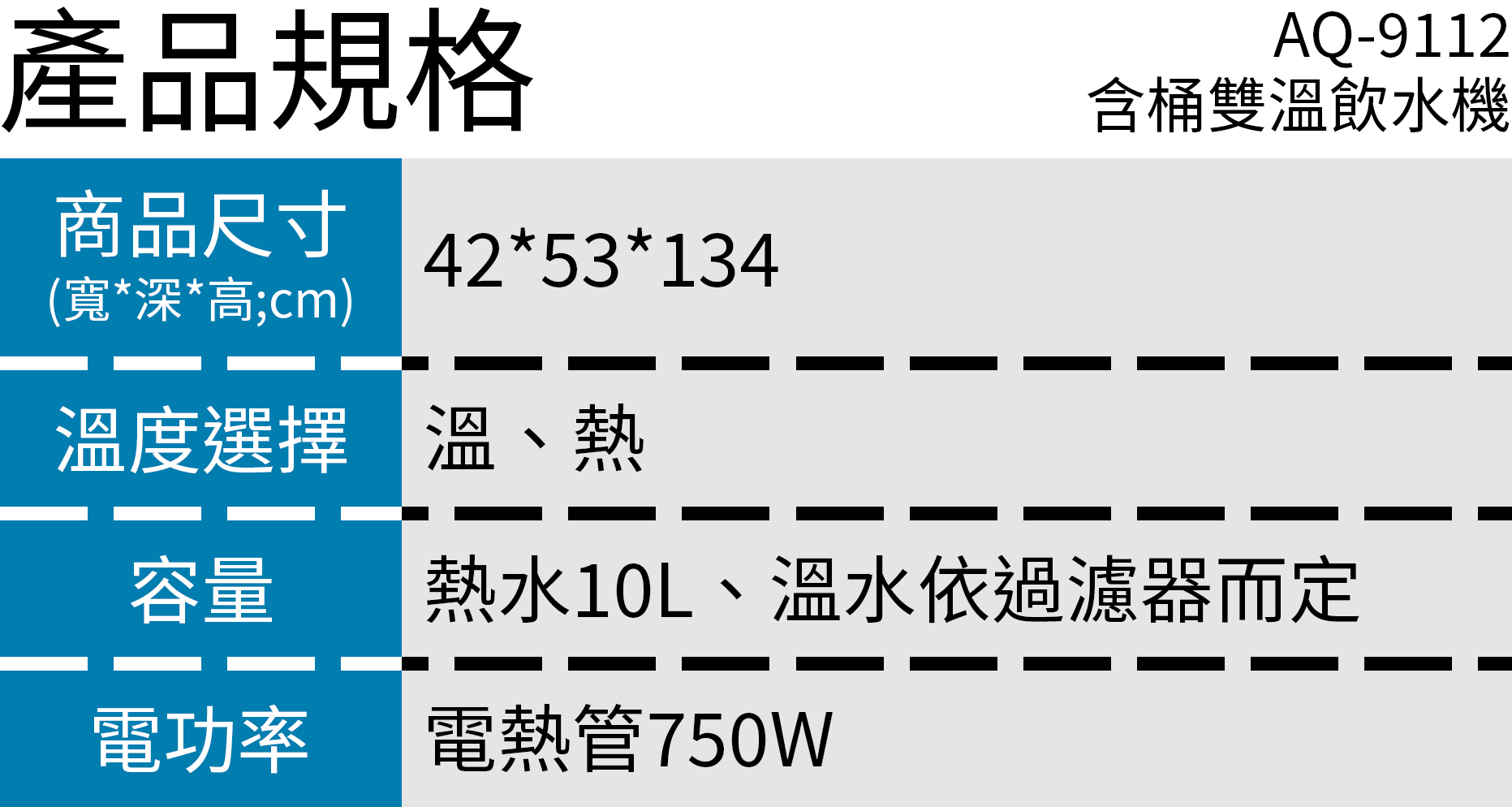 Aquatek沛宸 AQ-9112 含桶雙溫飲水機 -RO冷熱雙溫落地型