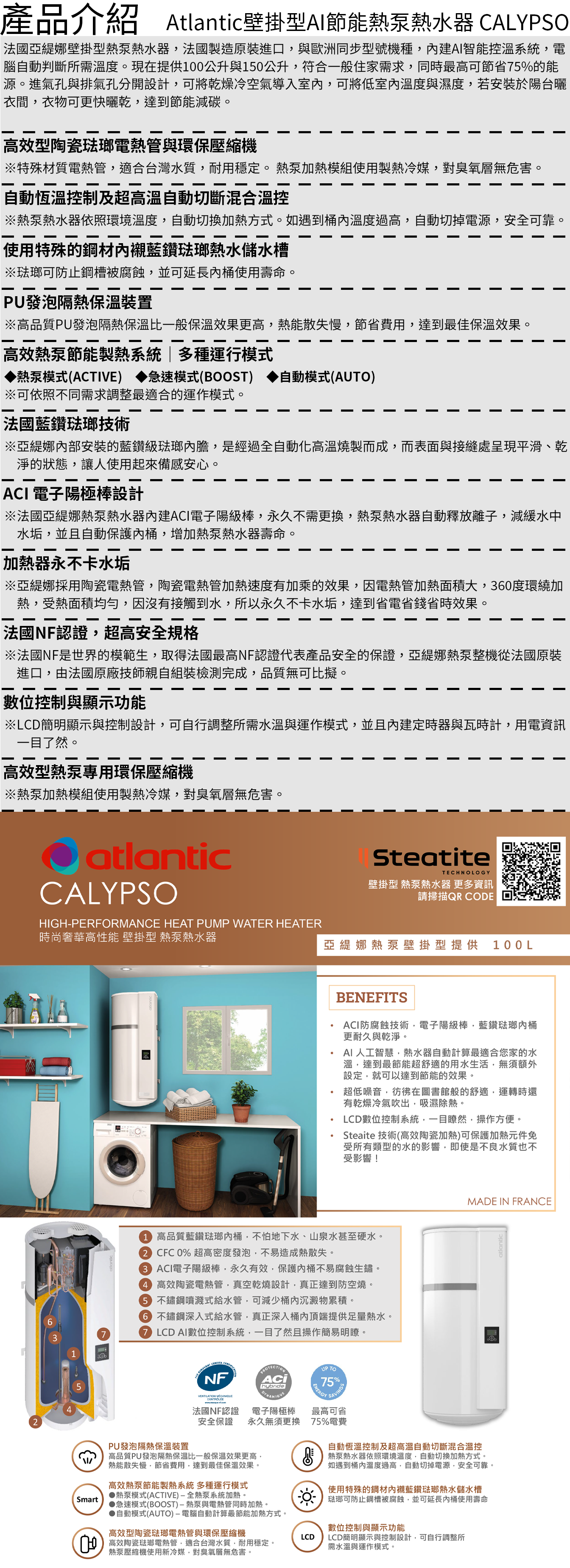 Atlantic法國亞緹娜 壁掛型AI節能熱泵熱水器 CALYPSO -循環式熱泵