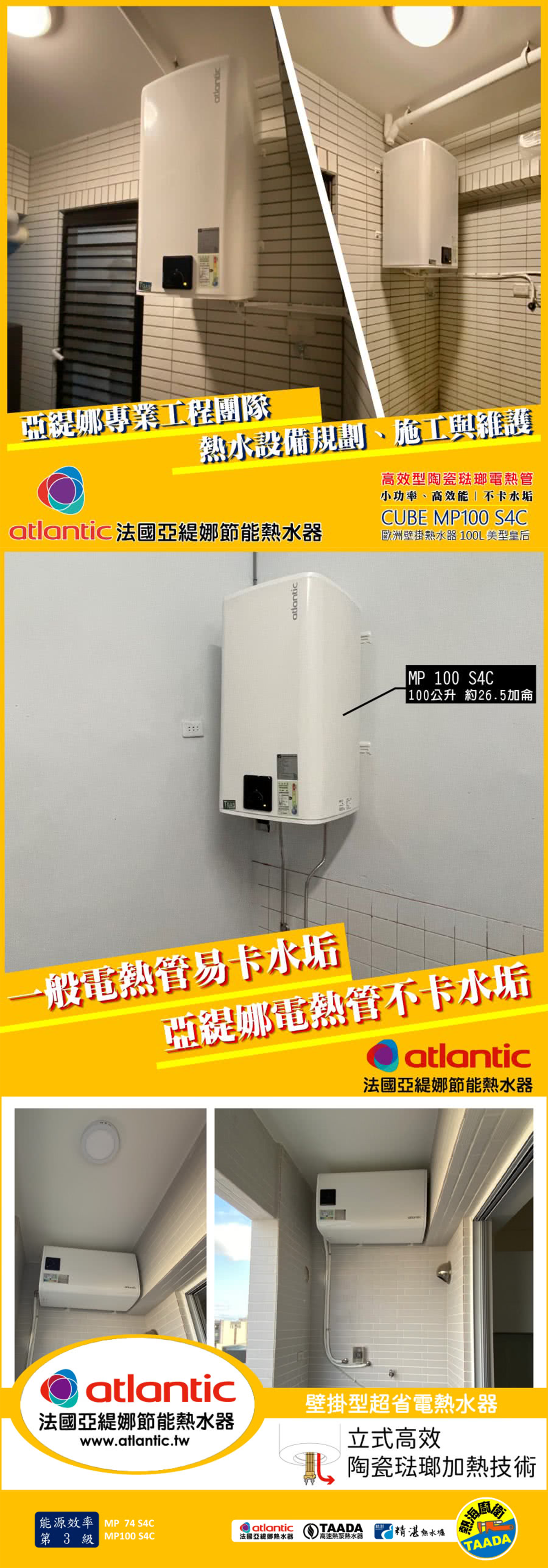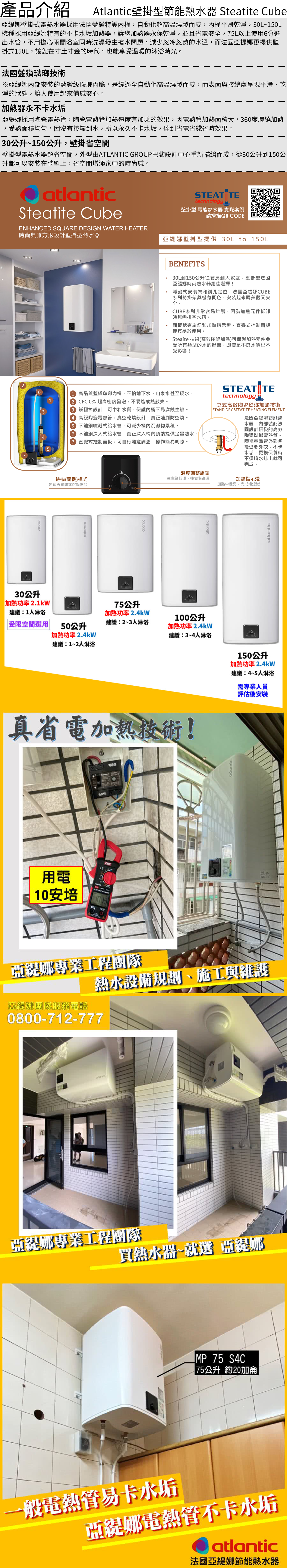 Atlantic法國亞緹娜 壁掛型節能熱水器 Steatite Cube 75、100公升-儲熱式電能