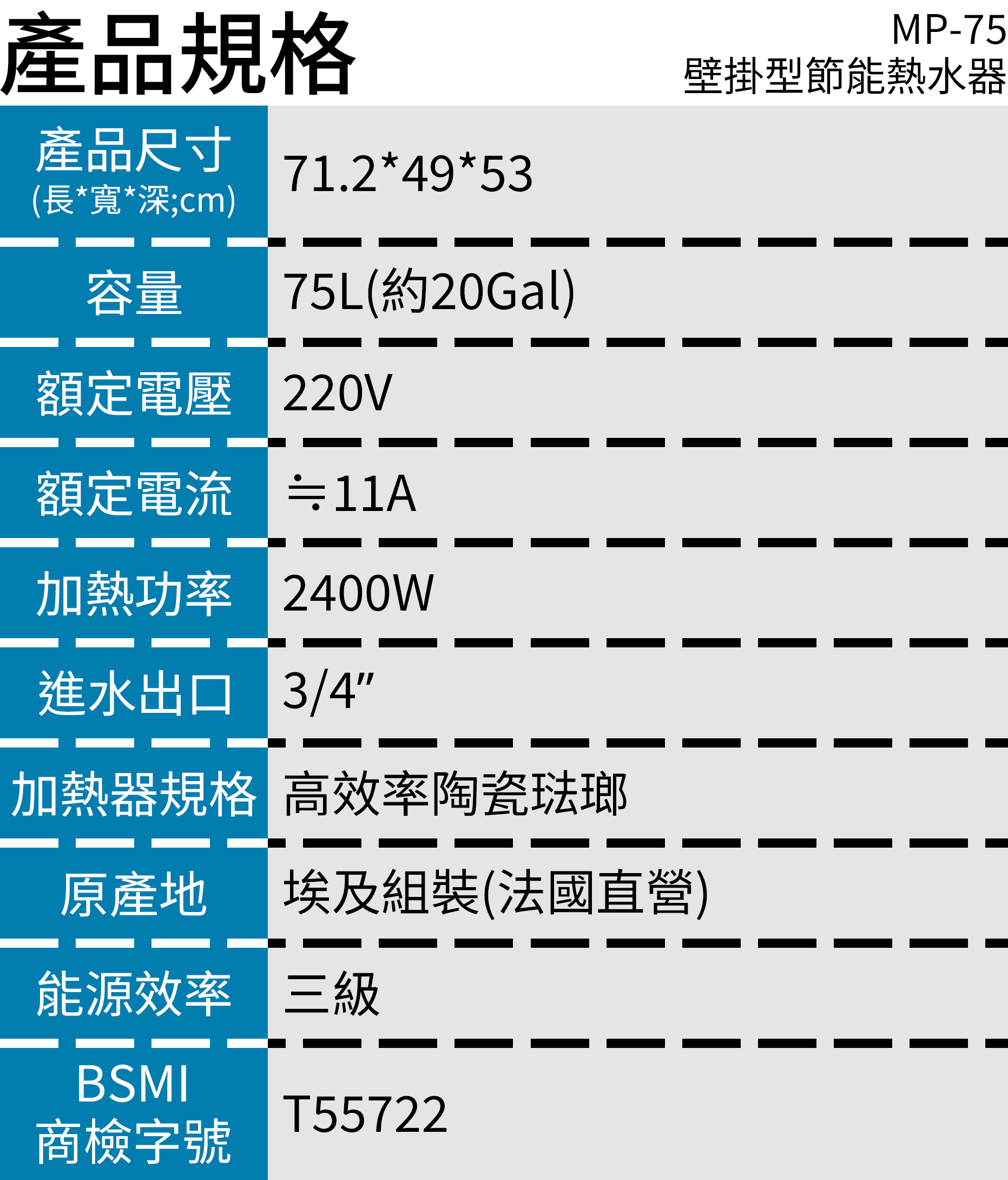 MP-75(75公升)壁掛