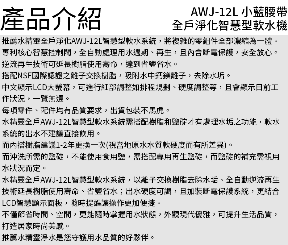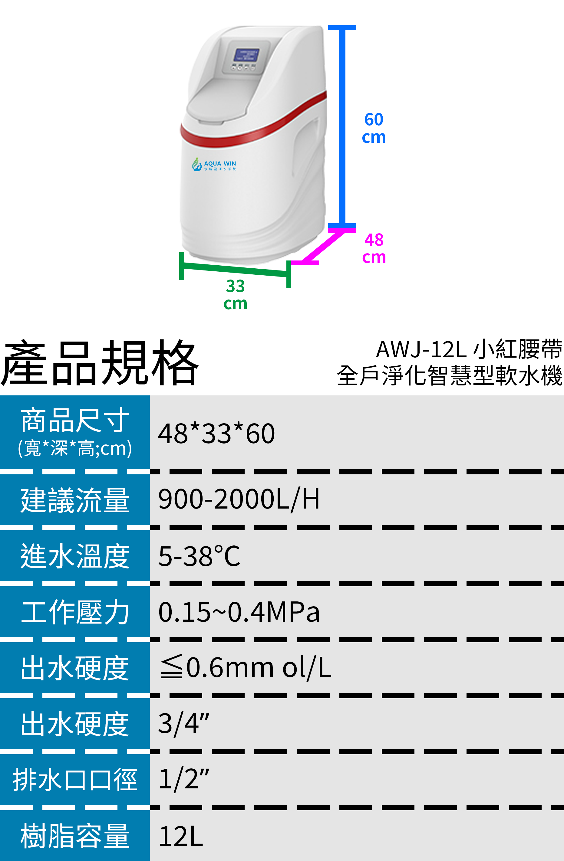 Aqua-Win水精靈 AWJ-12L 全戶淨化智慧型軟水機 小紅腰帶(單槽;控制頭110V&220V通用)
