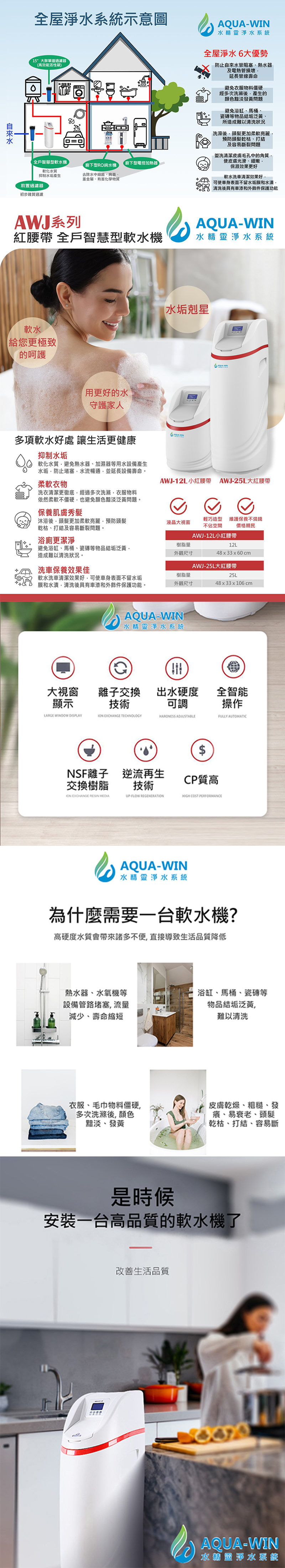 Aqua-Win水精靈 AWJ-25L 全戶淨化智慧型軟水機 大紅腰帶(單槽;控制頭110V&220V通用)