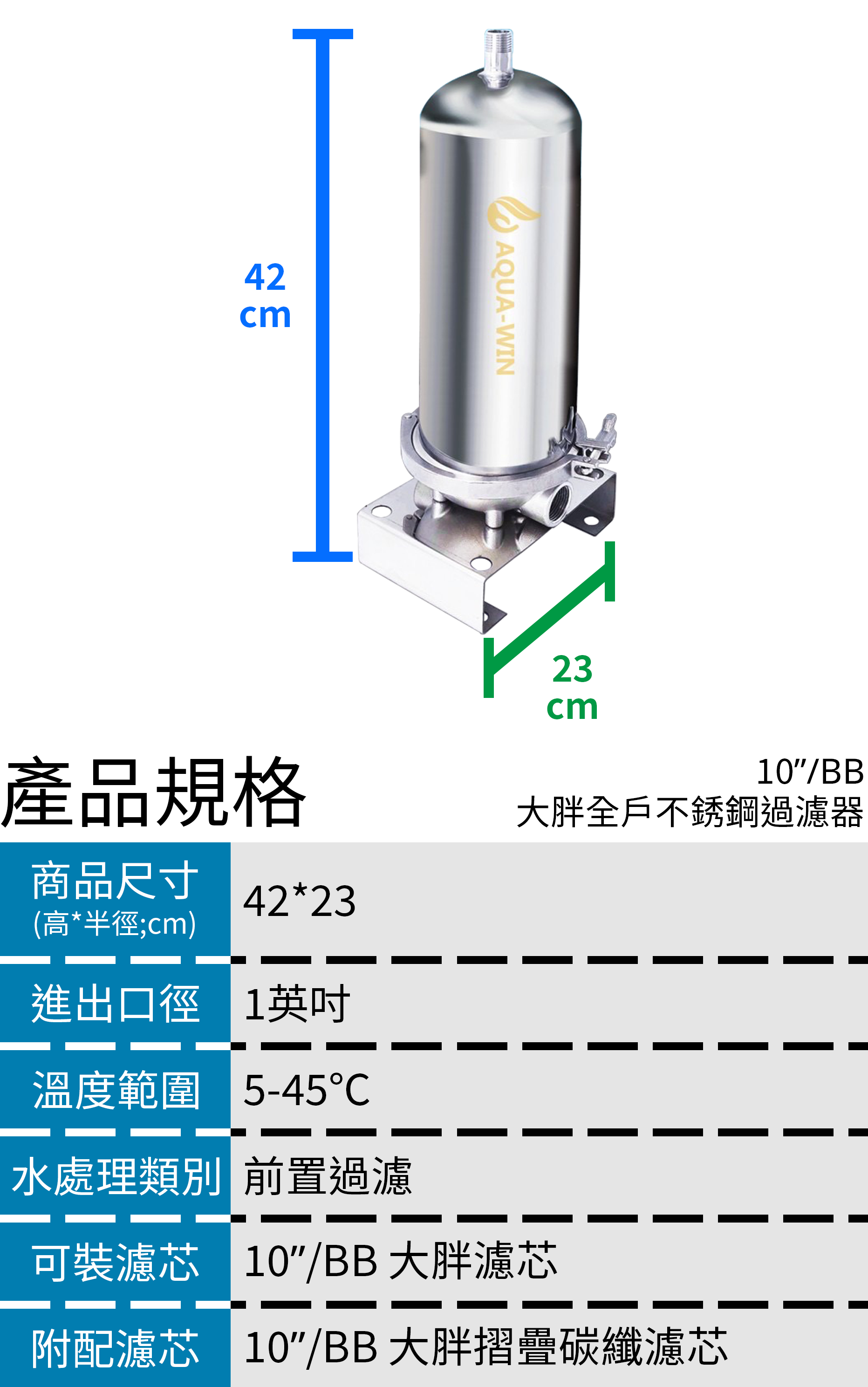 Aqua-Win水精靈 10吋BB 大胖全戶不銹鋼過濾器