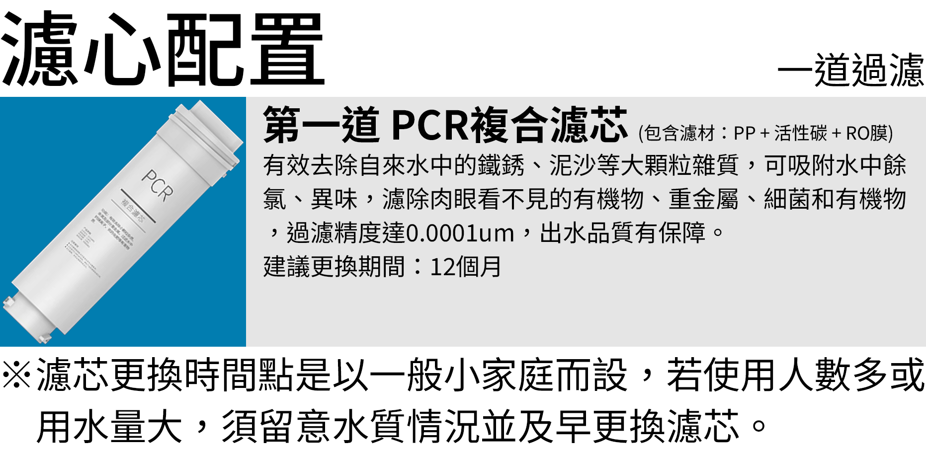三合一濾心設計(PP+活性碳+RO膜)