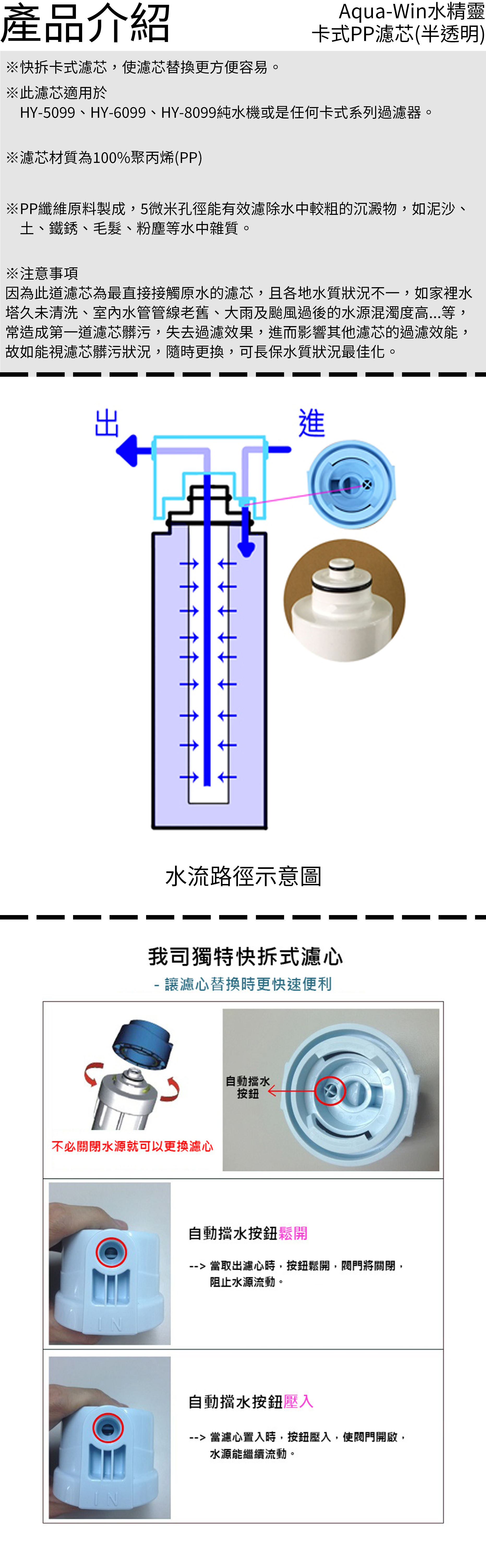 Aqua-Win水精靈 卡式PP濾芯(半透明/3個月)