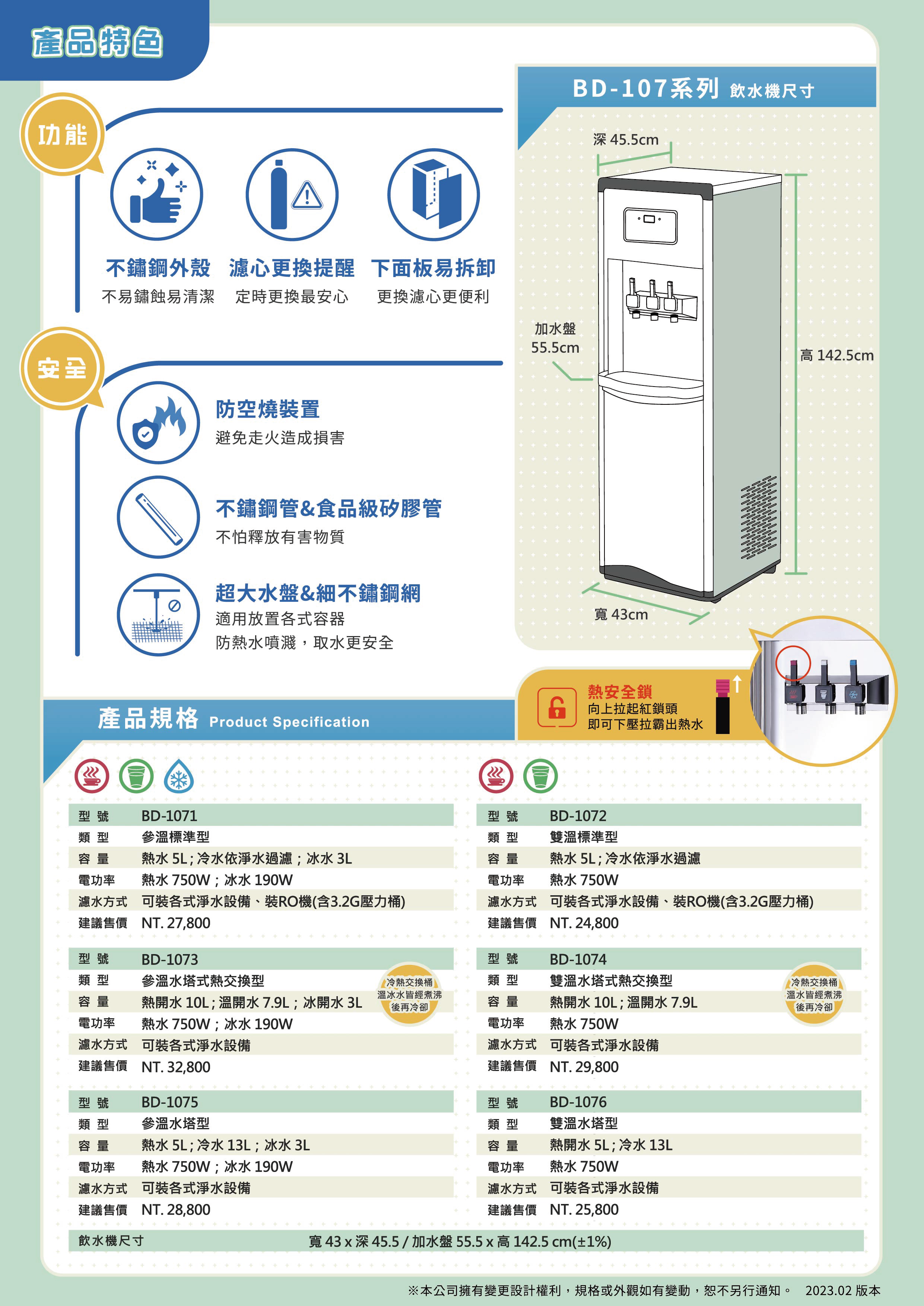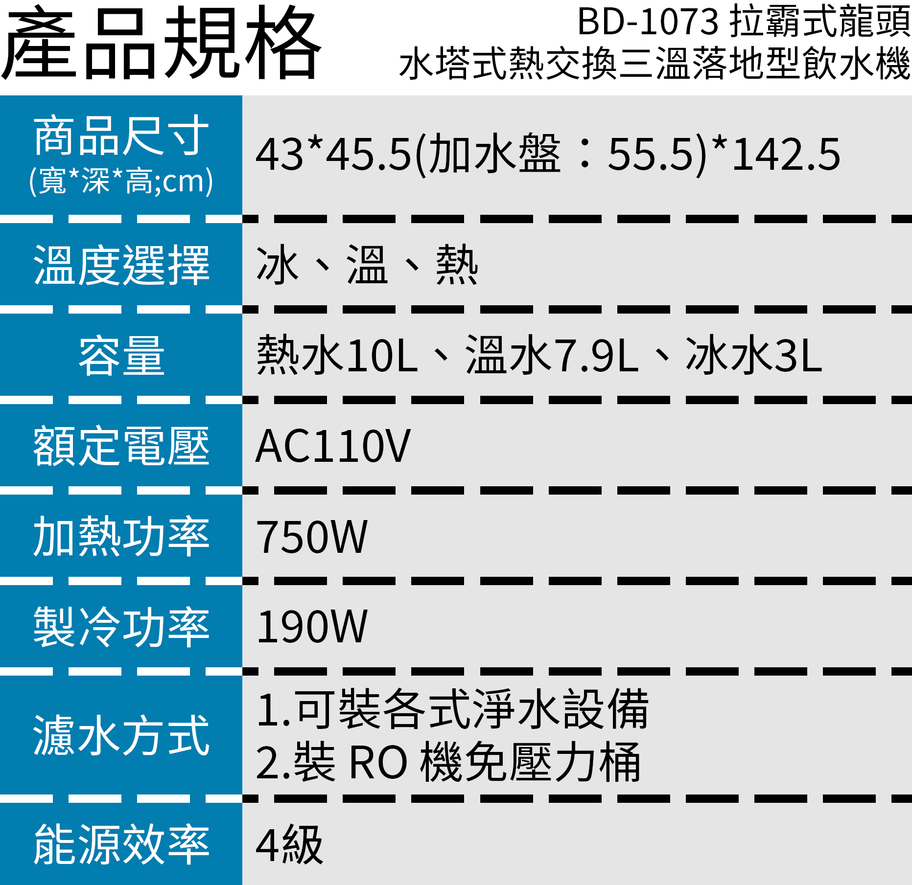 Buder普德 BD-1073 拉霸式龍頭 水塔式熱交換三溫落地型飲水機 - 冰冷熱三溫落地型