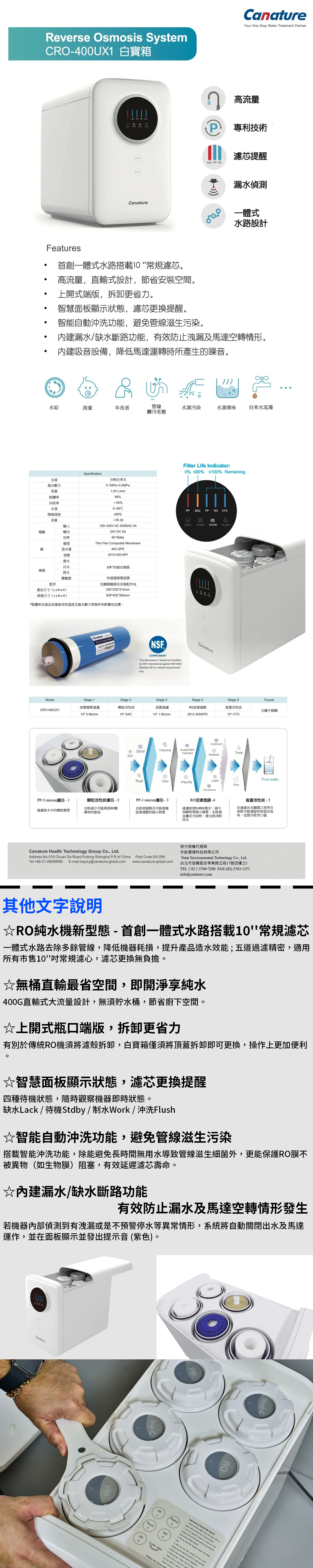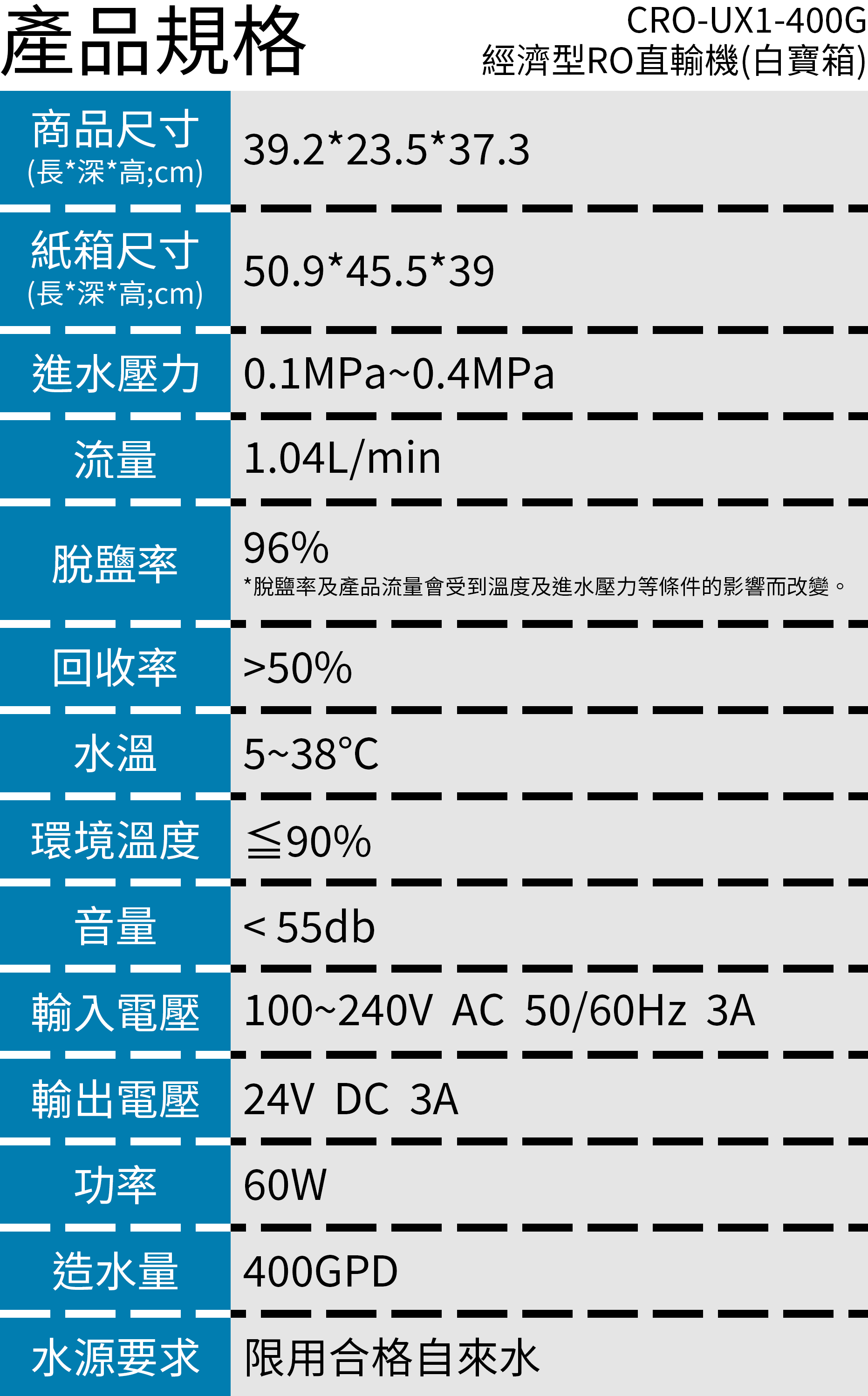 Canature開能 CRO-UX1-400G 經濟型RO直輸機(白寶箱)