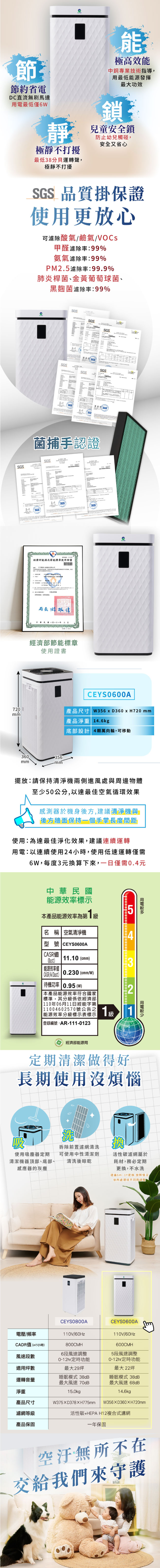 Ecotek中宇環保 CEYS0600A 空氣清淨機