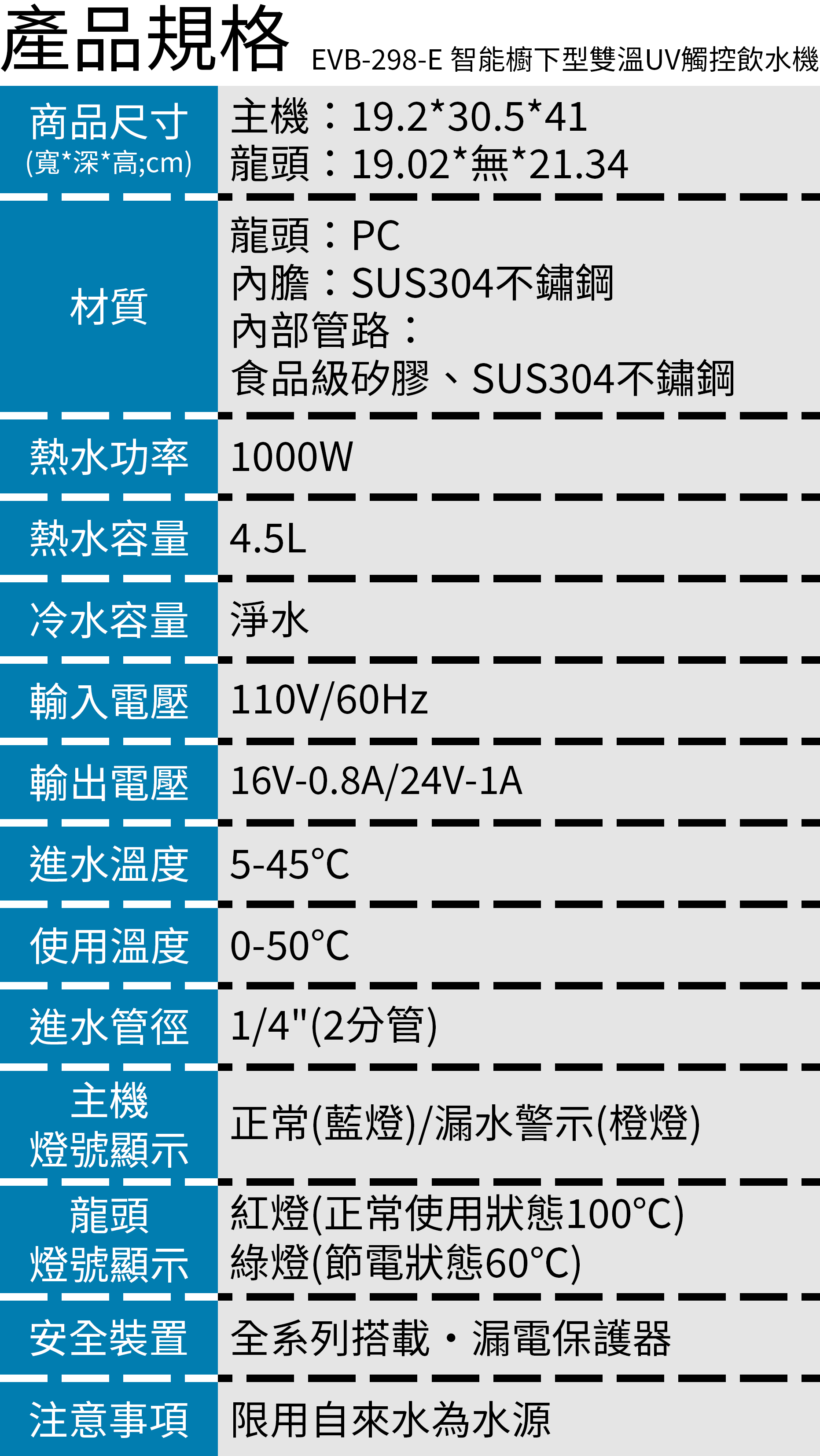 EVERPOLL愛科 EVB-298-E 廚下型雙溫UV觸控飲水機
