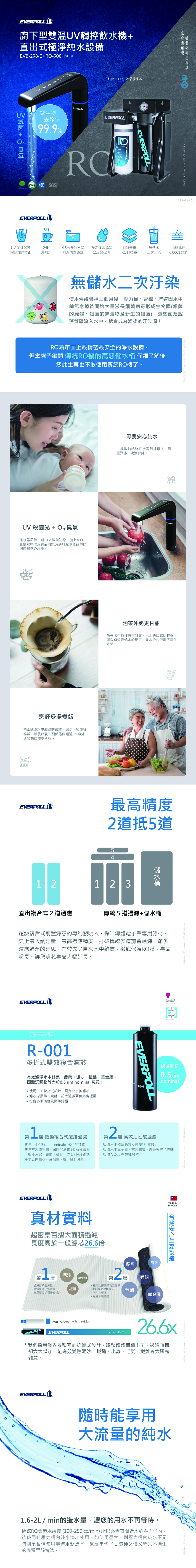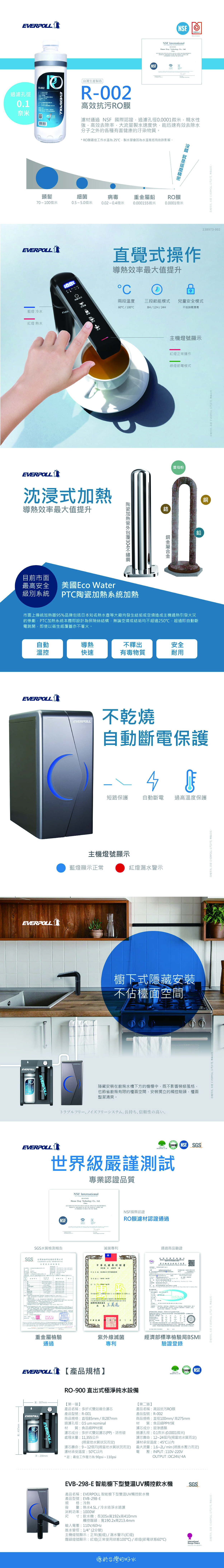 EVERPOLL愛科 EVB-298-E 廚下型雙溫UV觸控飲水機+RO-900 直出式極淨純水機