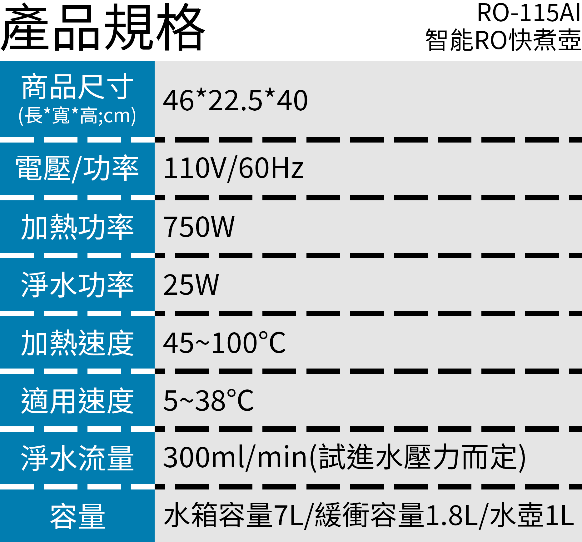 100~750ml 可調水量範圍(共14段定量水)