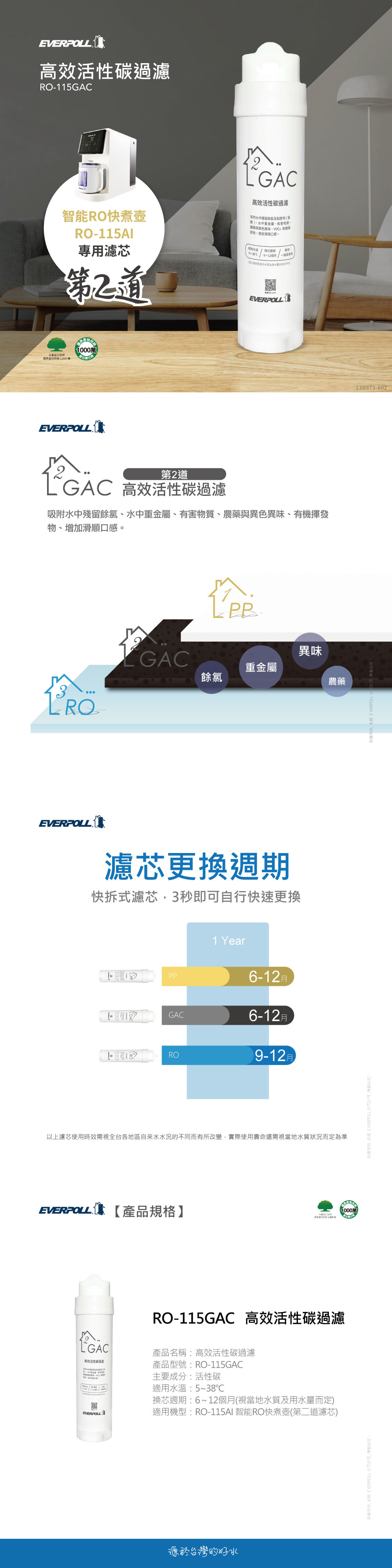 EVERPOLL愛科 R-AC 高效活性碳濾芯(RO-600第三道/6個月~1年)