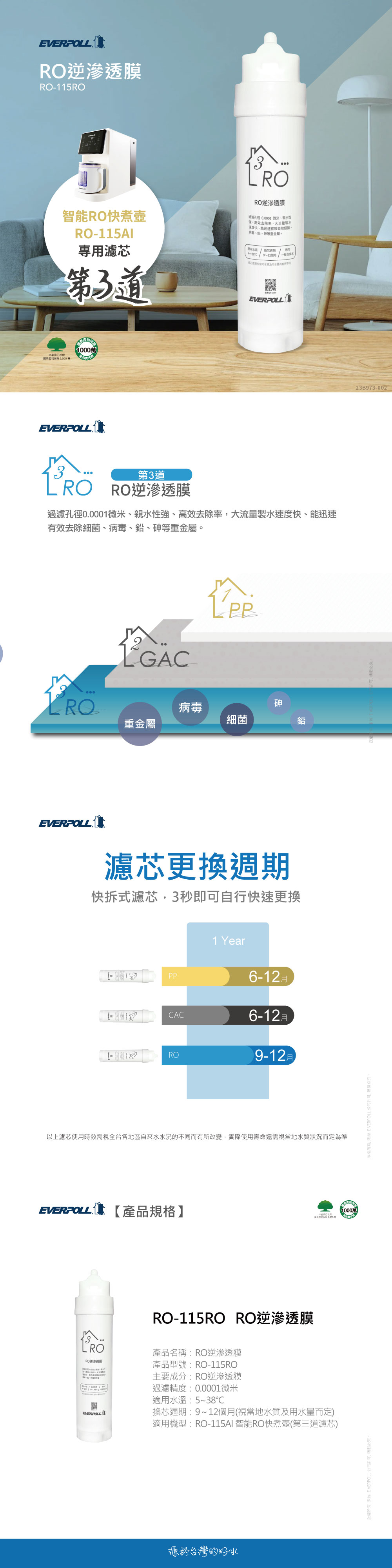 EVERPOLL愛科 RO-115AI專用濾芯組(三入組)