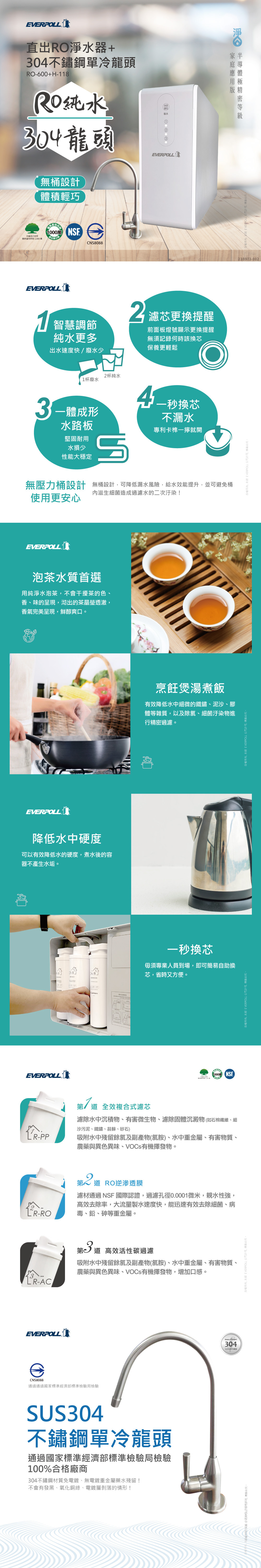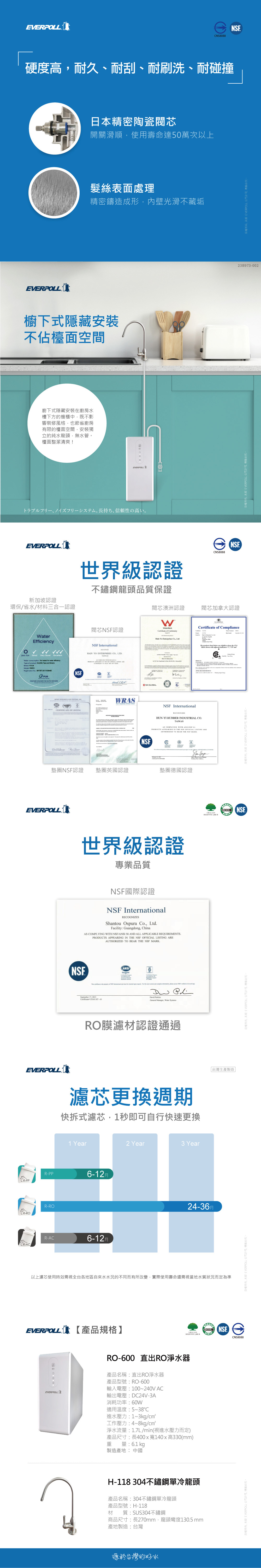 EVERPOLL愛科 RO-600 直出RO淨水器 + H-118龍頭