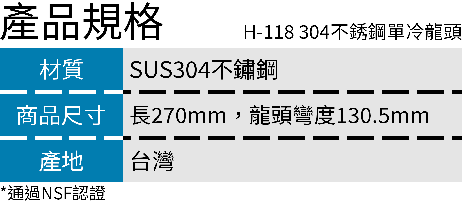 搭配H-118不銹鋼單冷龍頭