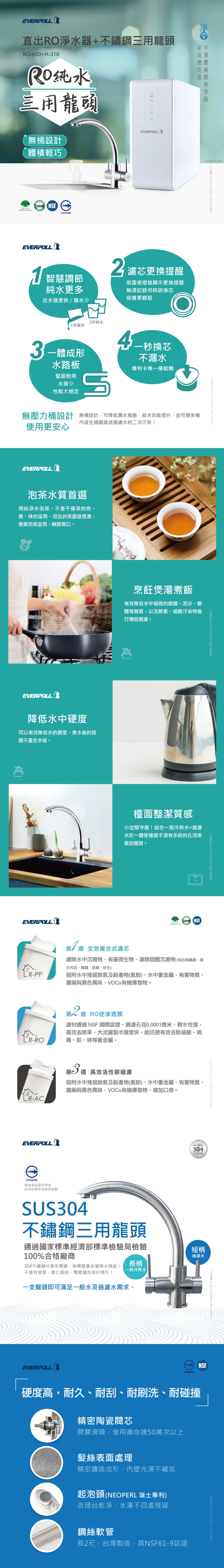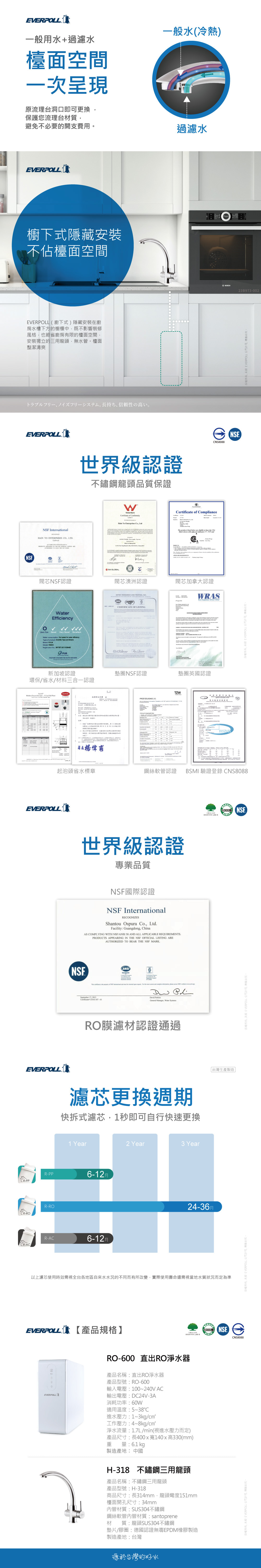 EVERPOLL愛科 RO-600 直出RO淨水器 + H-318龍頭