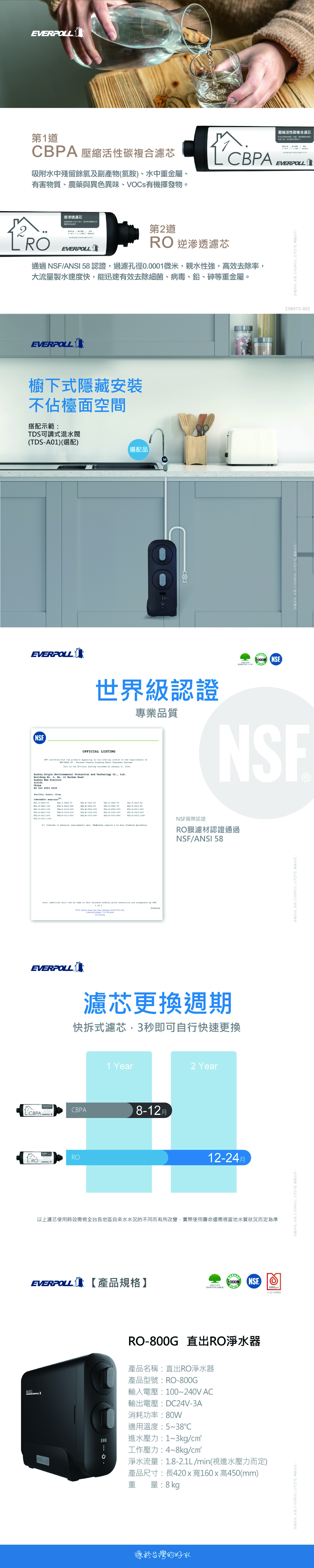 EVERPOLL愛科 RO-800G 直出RO淨水器