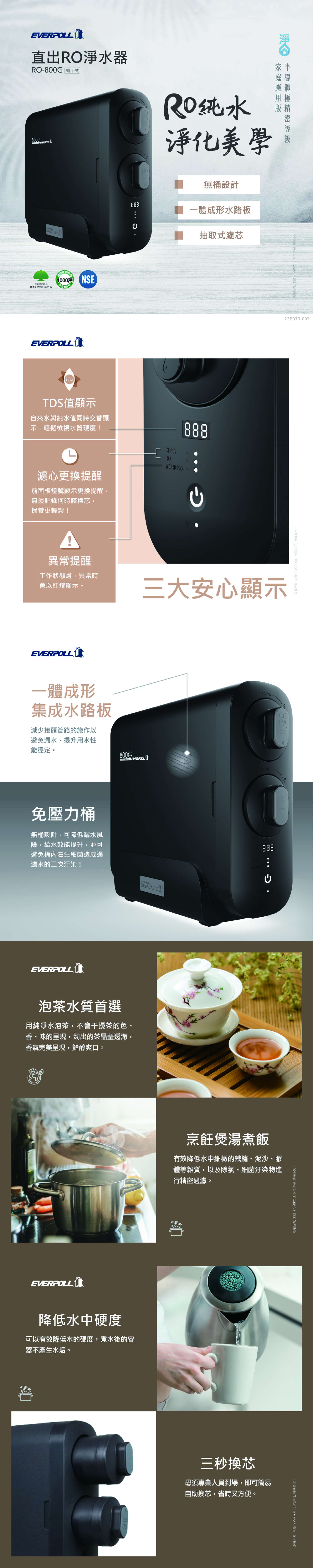 EVERPOLL愛科 RO-800G 直出RO淨水器 + H-118龍頭
