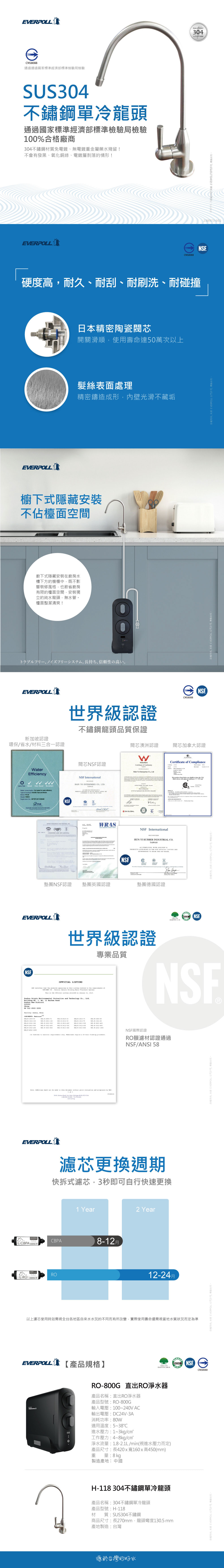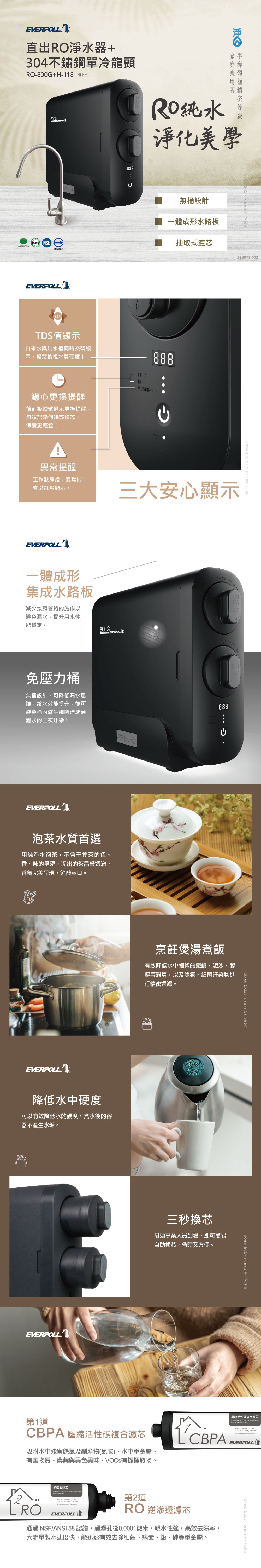EVERPOLL愛科 RO-800G 直出RO淨水器 + H-118龍頭