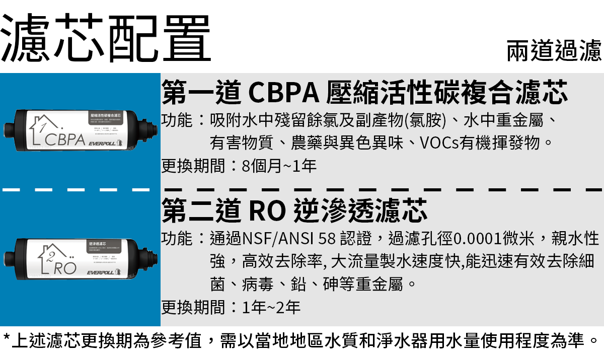 EVERPOLL愛科 RO-800G-PP CBPA壓縮活性碳複合濾芯(RO-800G系列第一道/8個月~1年)