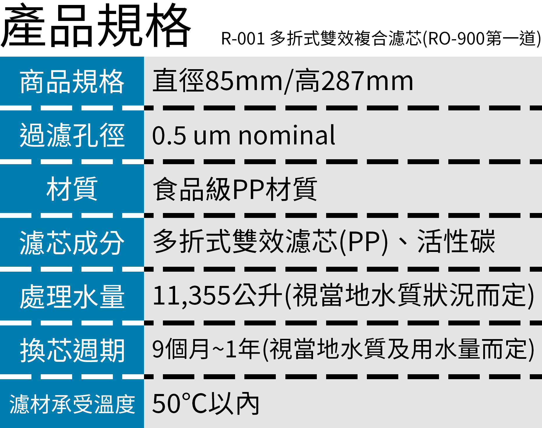 EVERPOLL愛科 R-001 多折式雙效複合濾芯(RO-900 第一道/9個月~1年)
