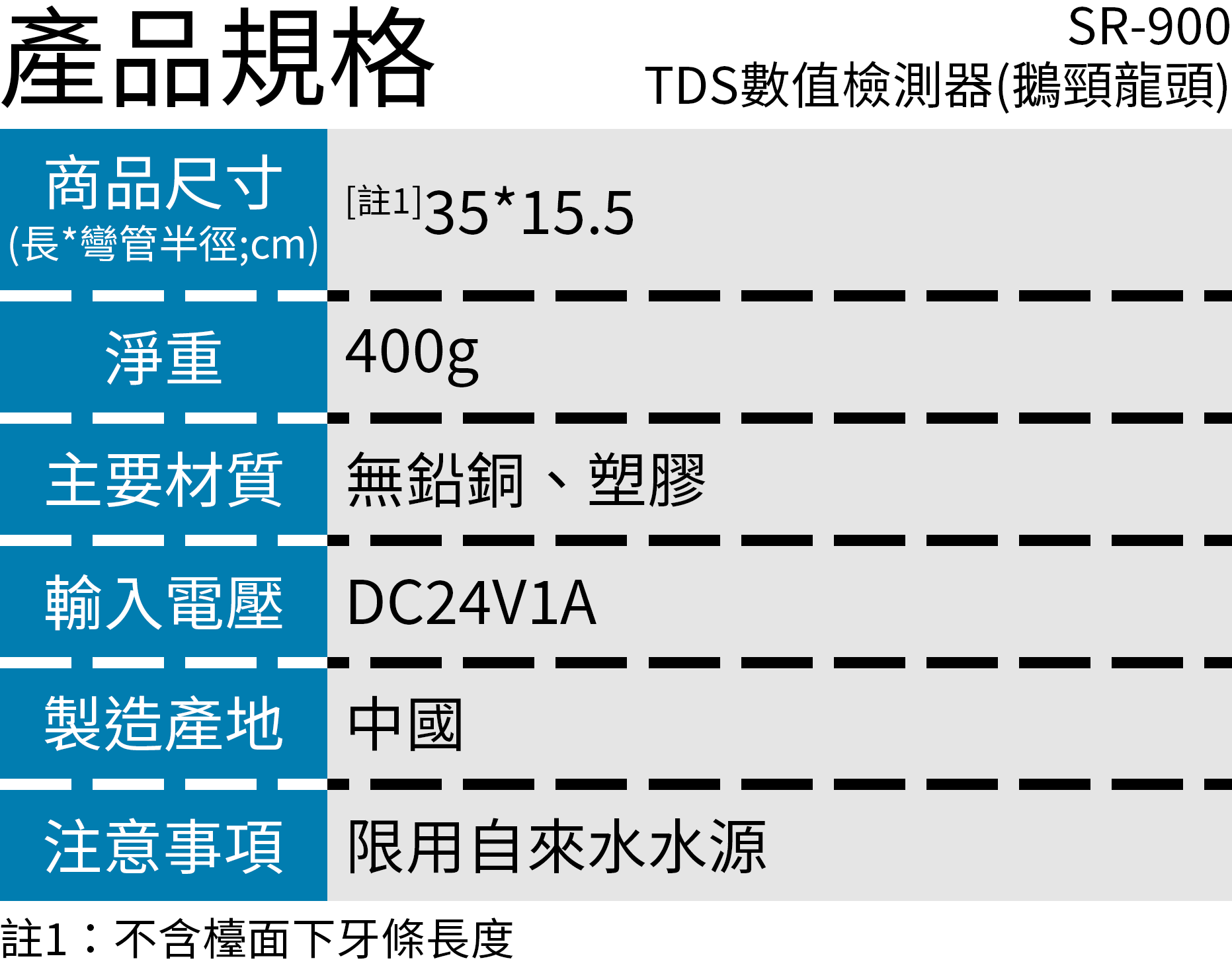 附配顯示水質TDS之鵝頸龍頭(SR-900)