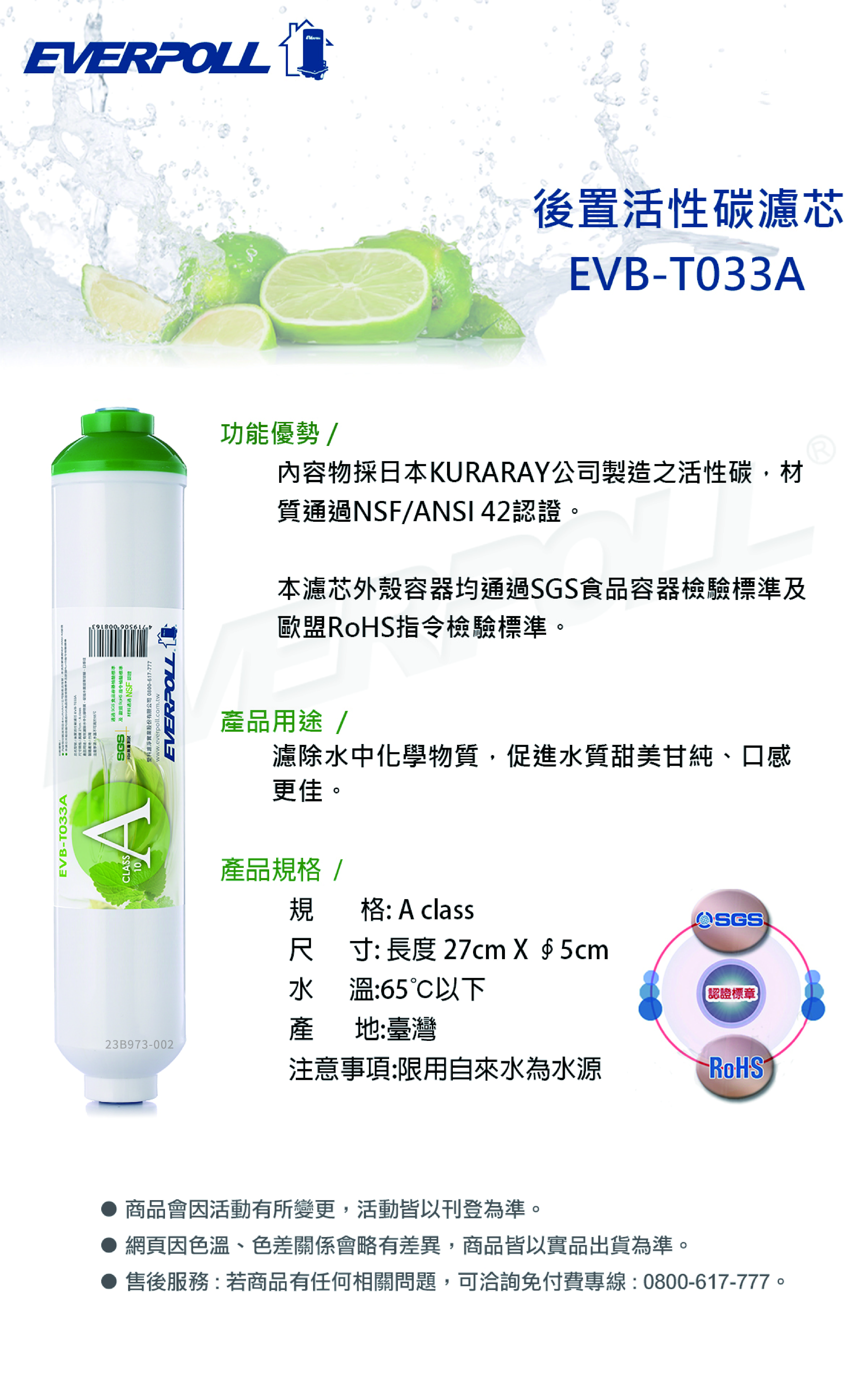 EVERPOLL愛科 T033A 後置活性碳濾芯