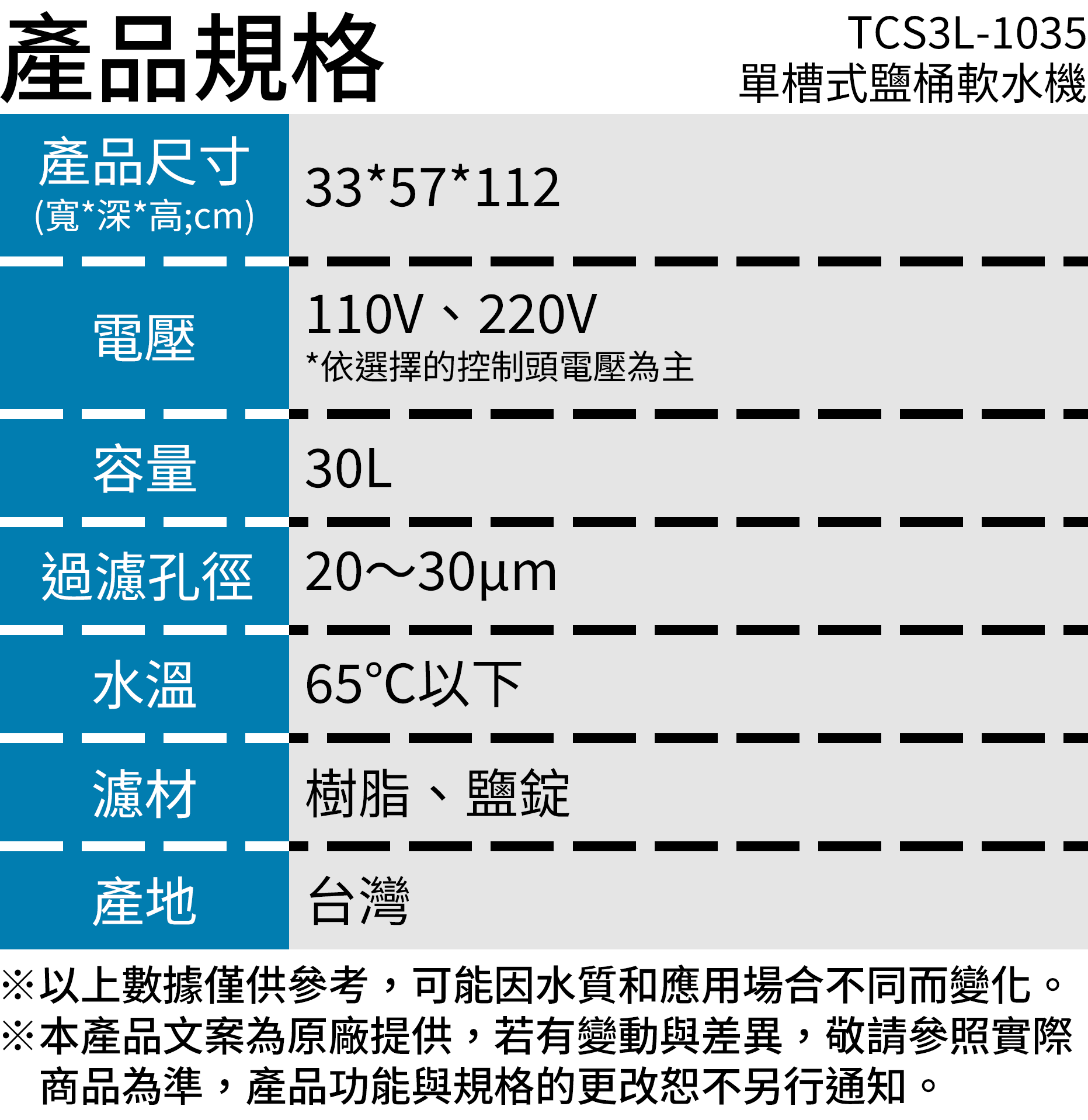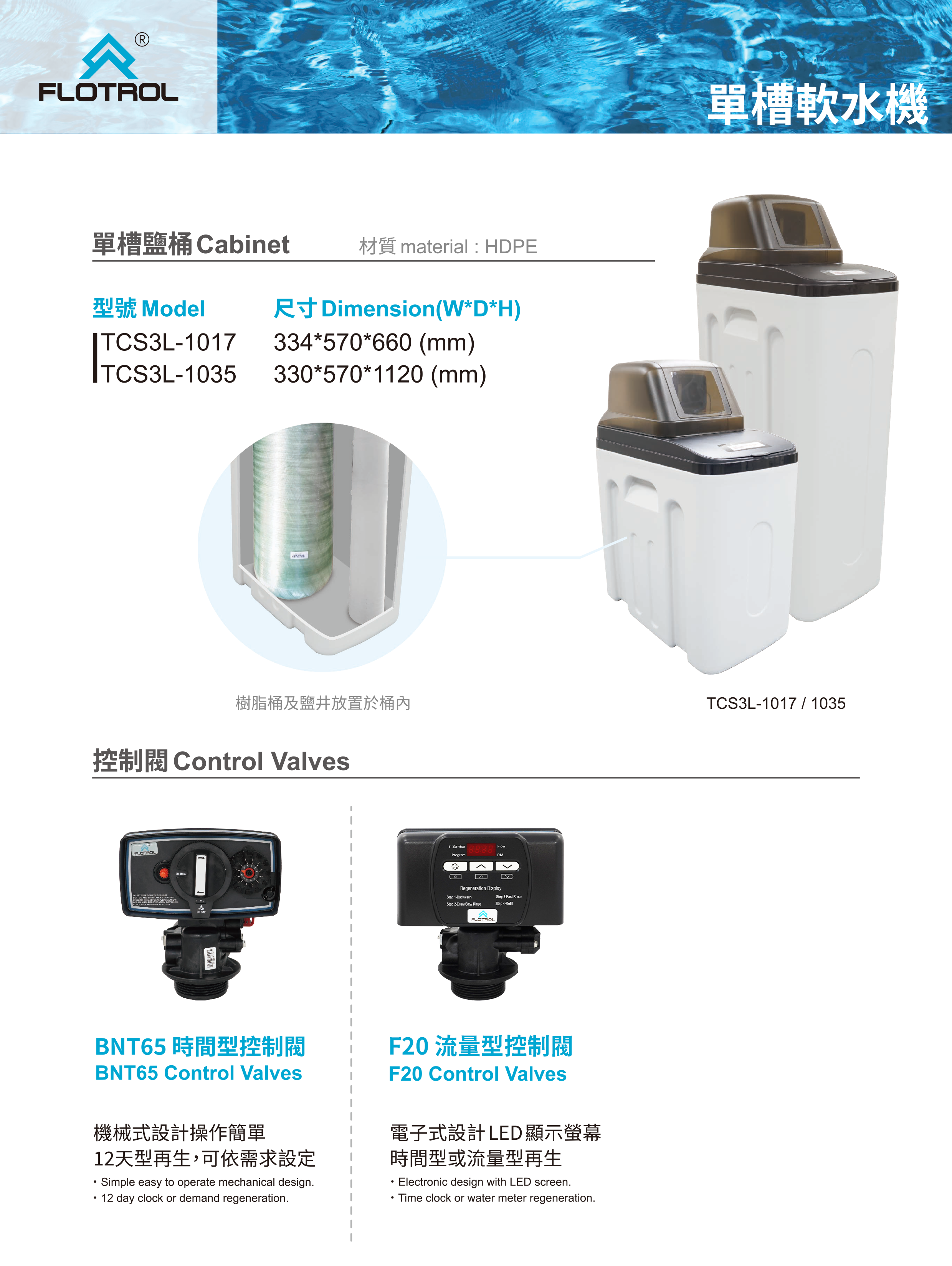 [意者請電洽]Flotrol富洛 TCS3L-1035 單槽式鹽桶軟水機