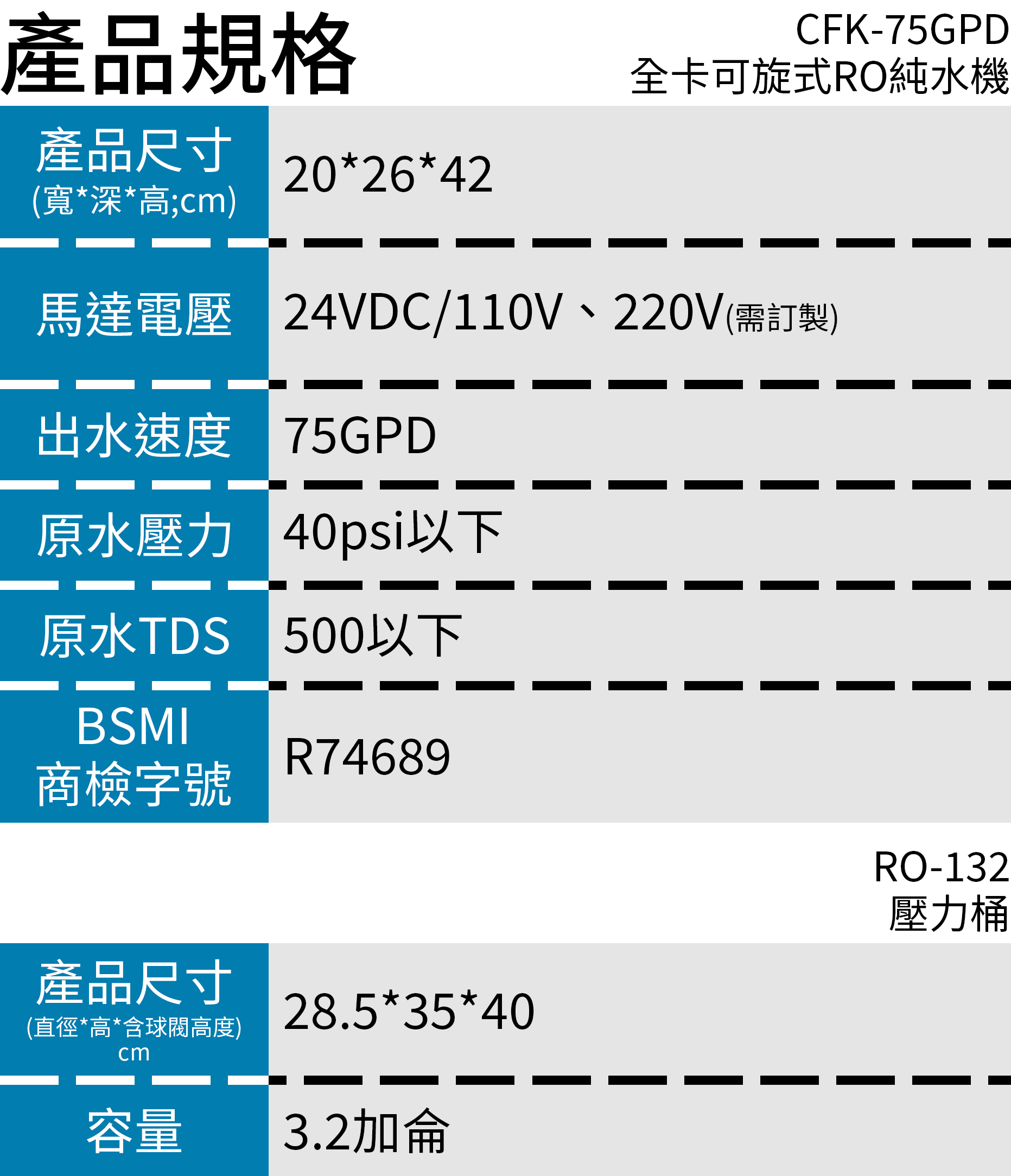 Fluxtek凡事康 CFK-75GPD 全卡可旋式RO純水機