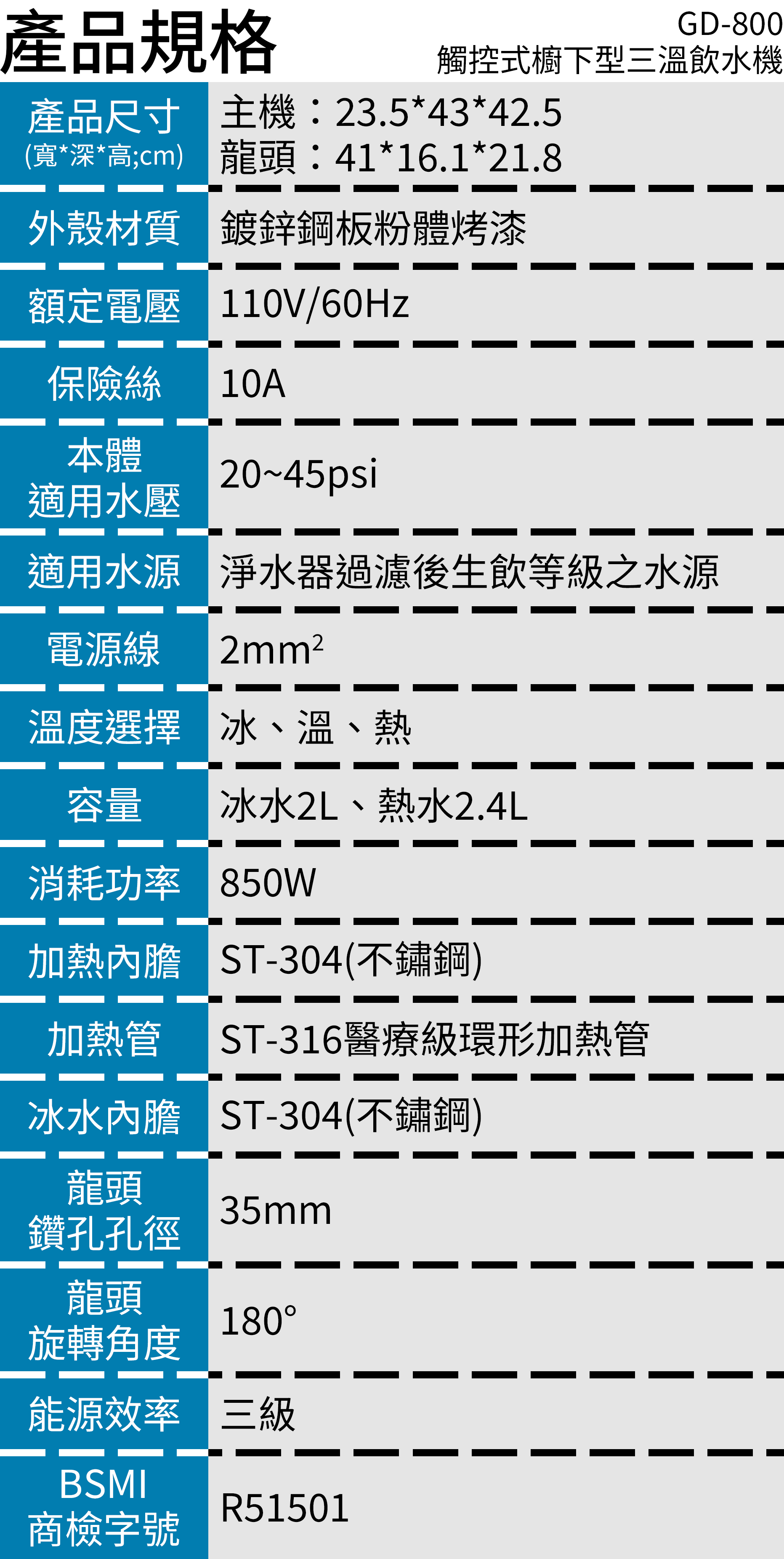 Gung Dai宮黛 GD-800 觸控式櫥下型三溫飲水機