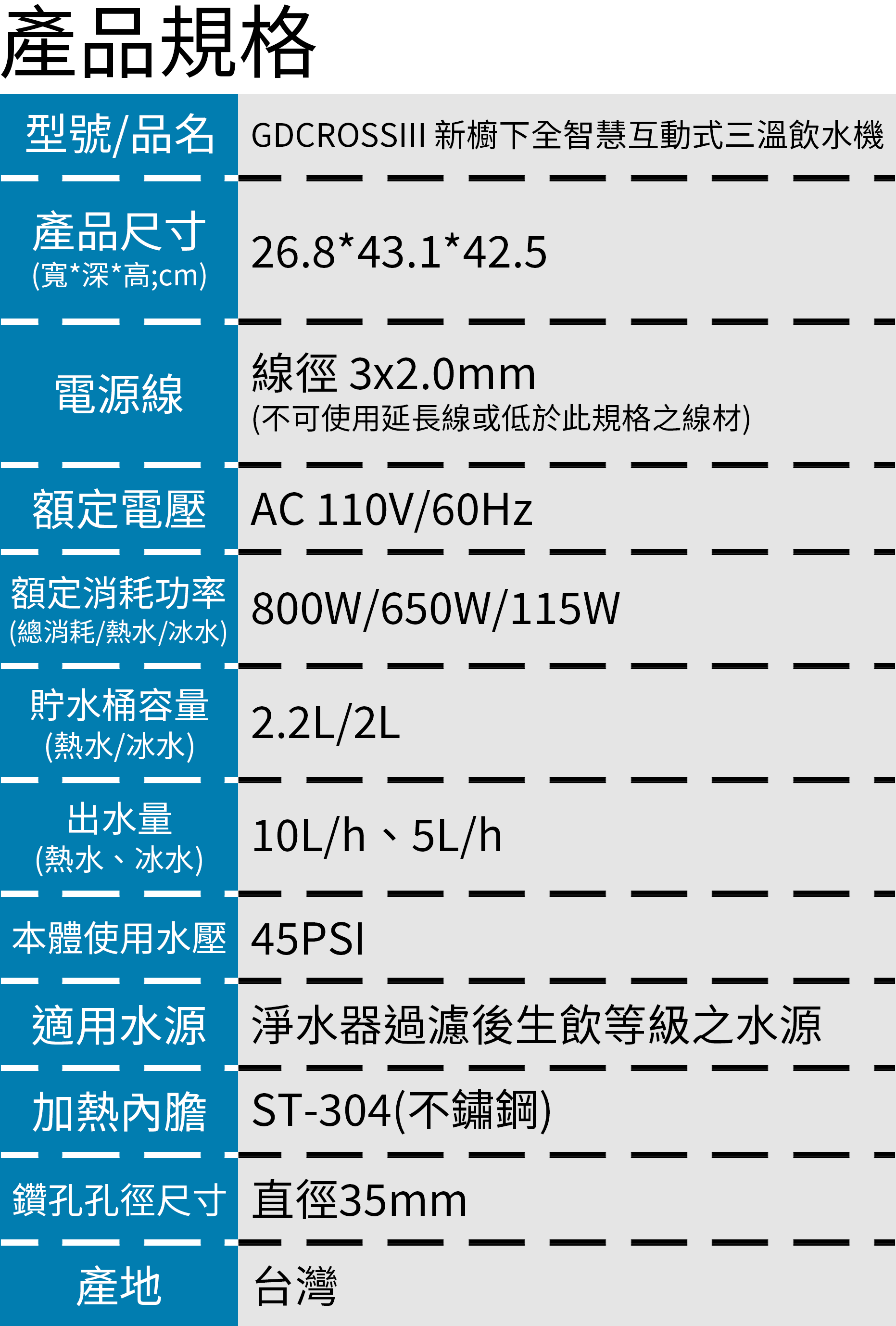 Gung Dai宮黛 GDCROSSIII 新櫥下全智慧互動式三溫飲水機