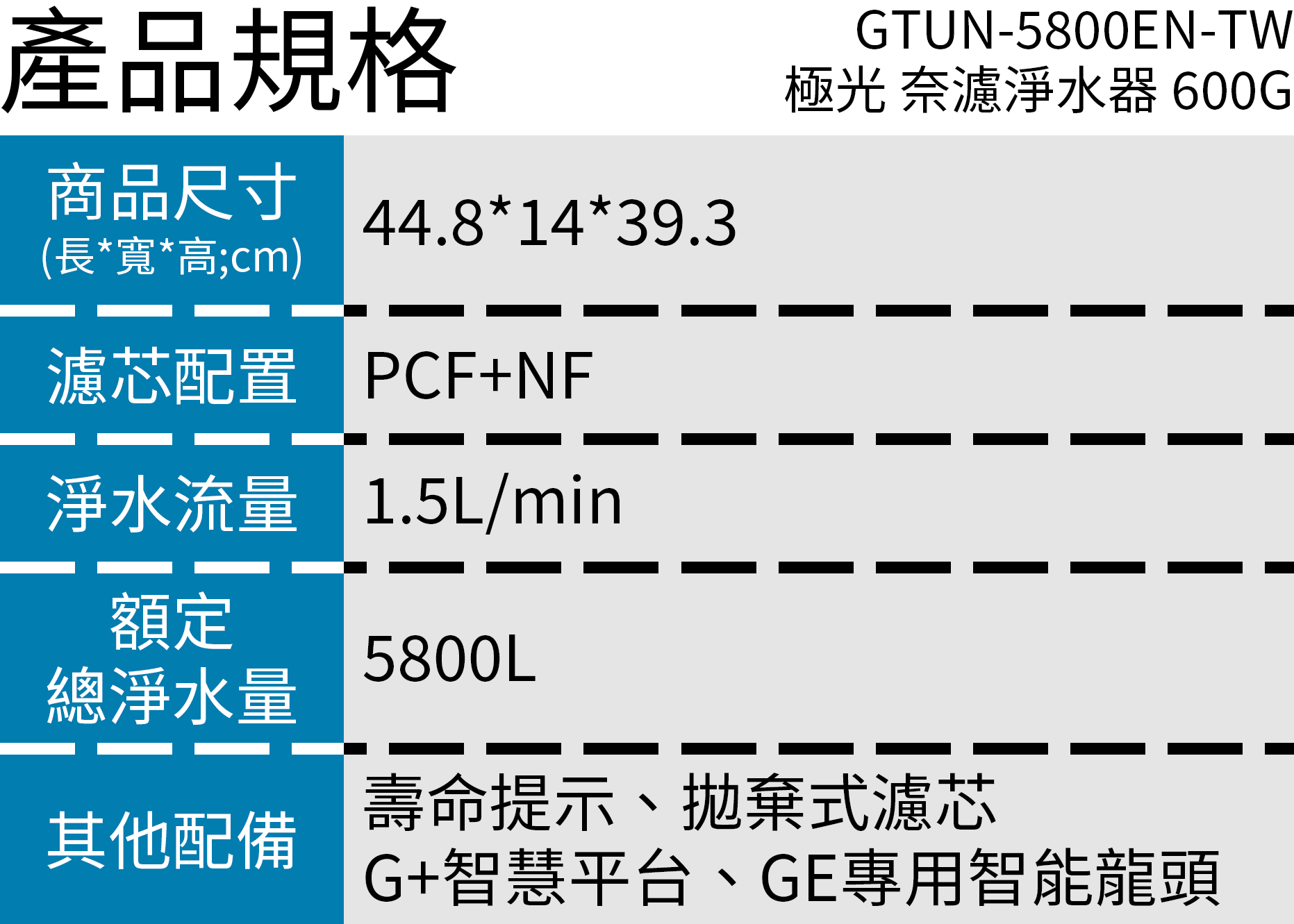 GE奇異淨水 GTUN-5800EN-TW 極光 奈濾淨水器 600G