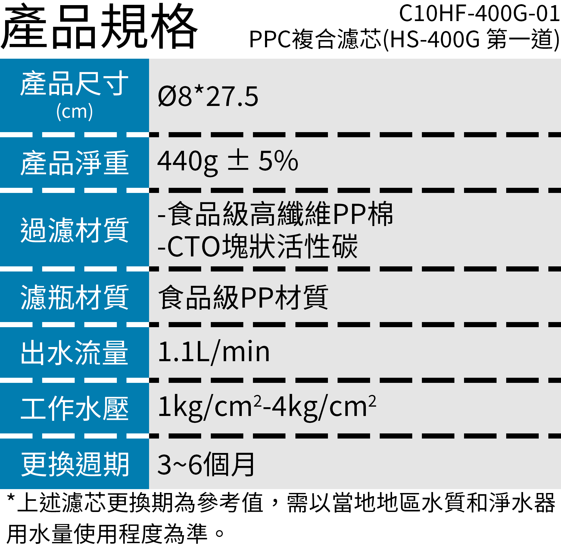 Haohsing豪星 C10HF-400G-01 PPC複合濾芯(HS-400G第一道/3~6個月)