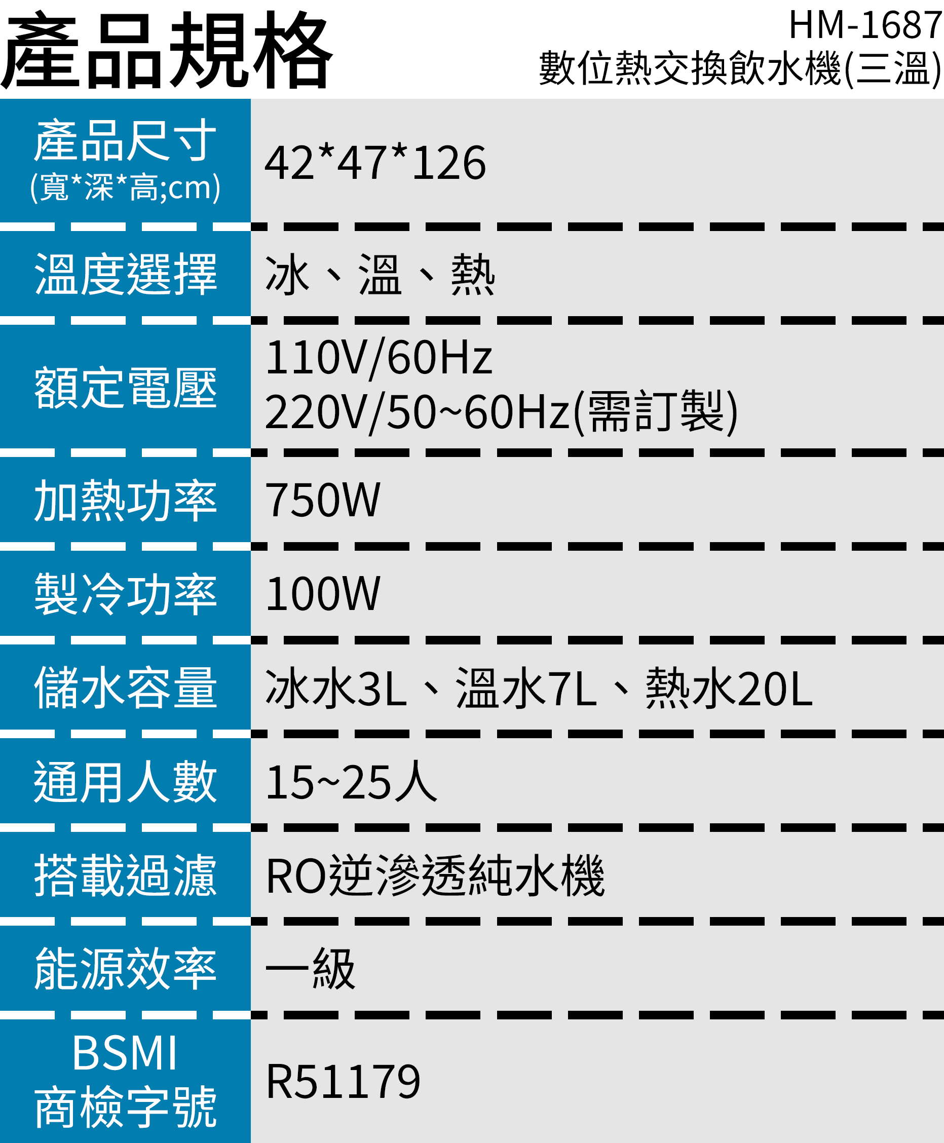 Haohsing豪星 HM-1687 數位熱交換飲水機 -冰溫熱三溫落地型