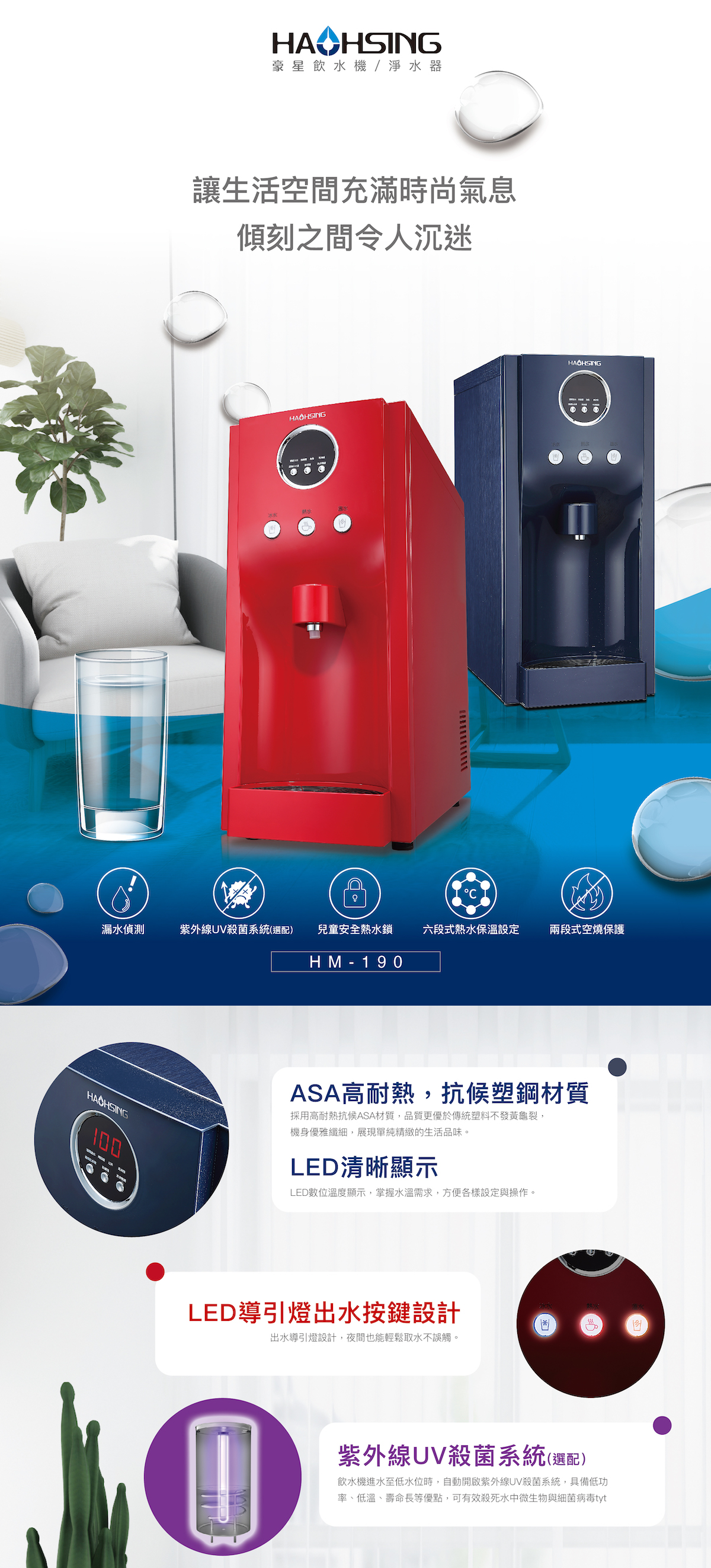 Haohsing豪星 HM-190 桌上型飲水機 -RO冰冷熱三溫桌上型 (藍、紅)