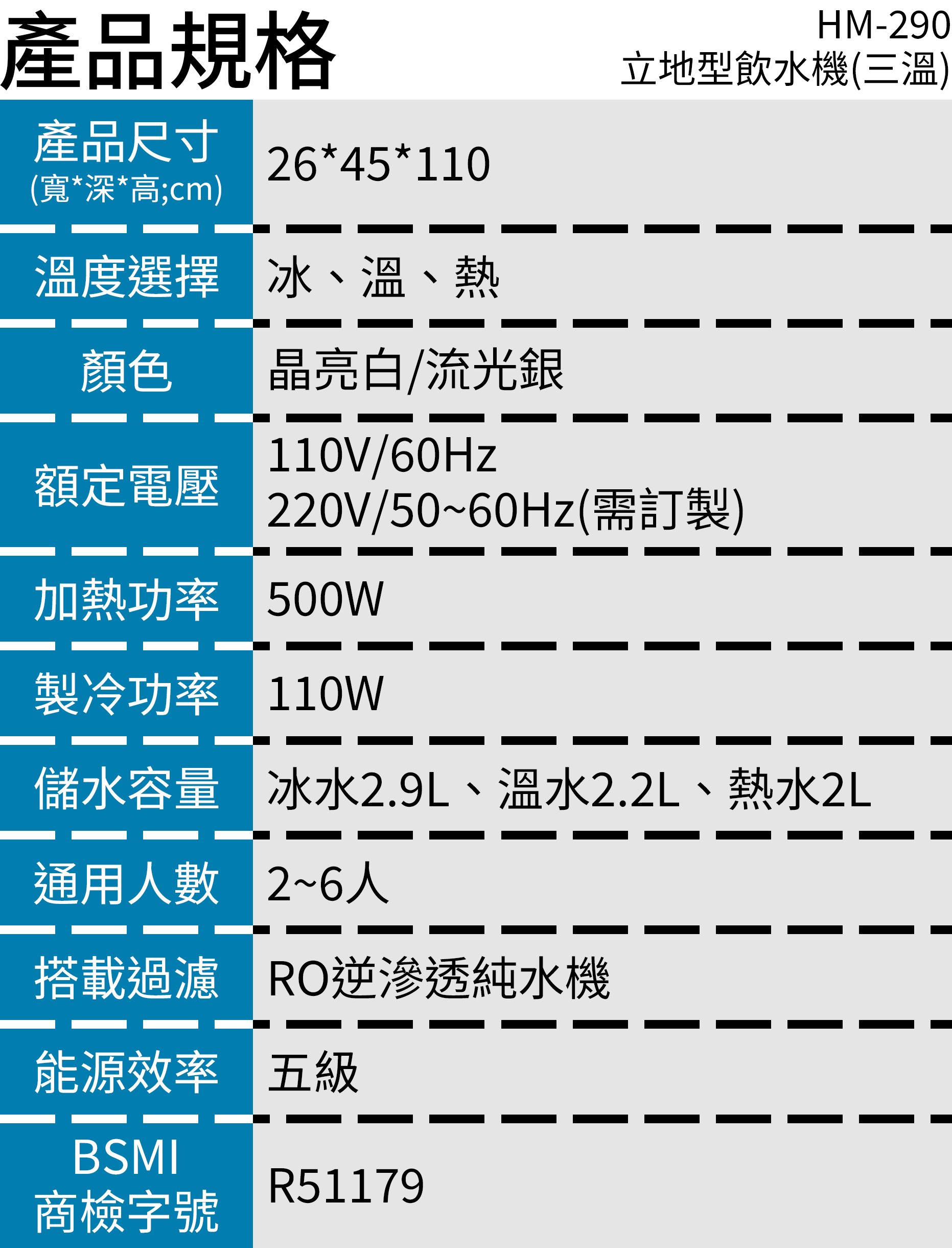 Haohsing豪星 HM-290 立地型飲水機 -RO冰冷熱三溫落地型