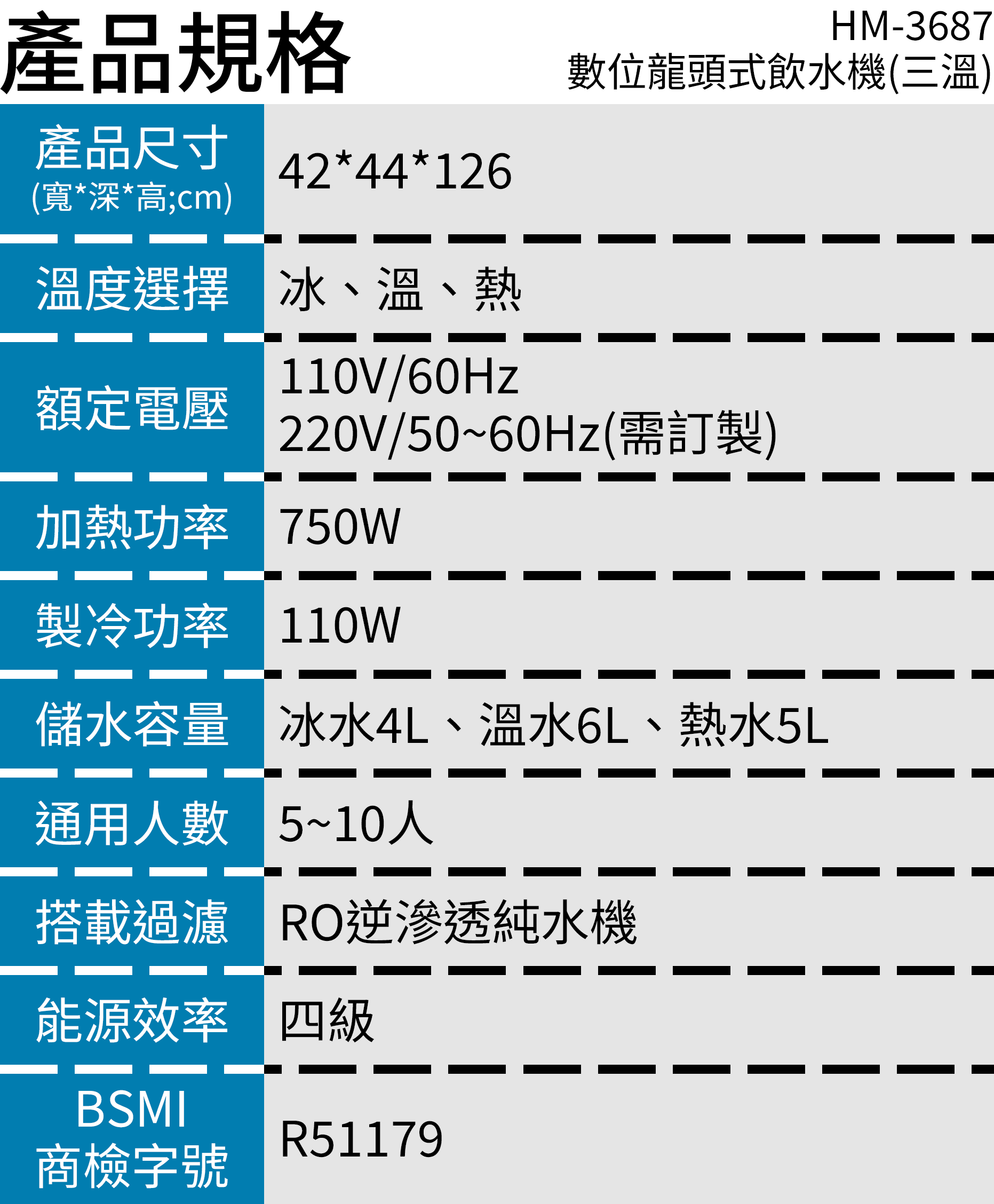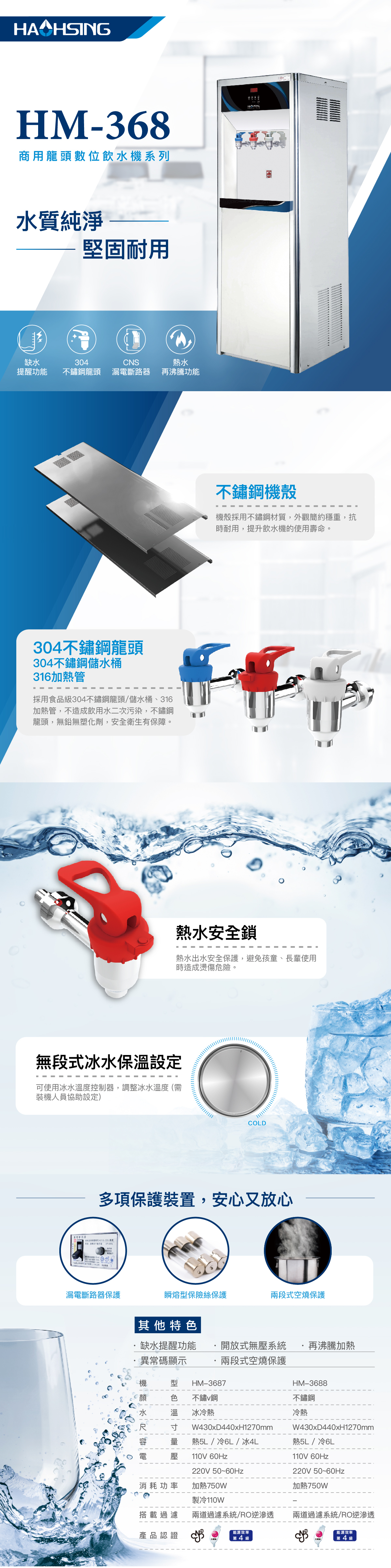 Haohsing豪星 HM-3687 數位龍頭式飲水機 -RO冰冷熱三溫落地型