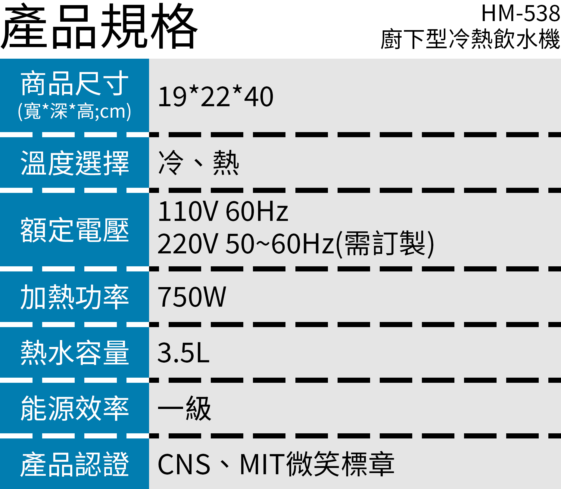 Haohsing豪星 HM-538 廚下型冷熱飲水機