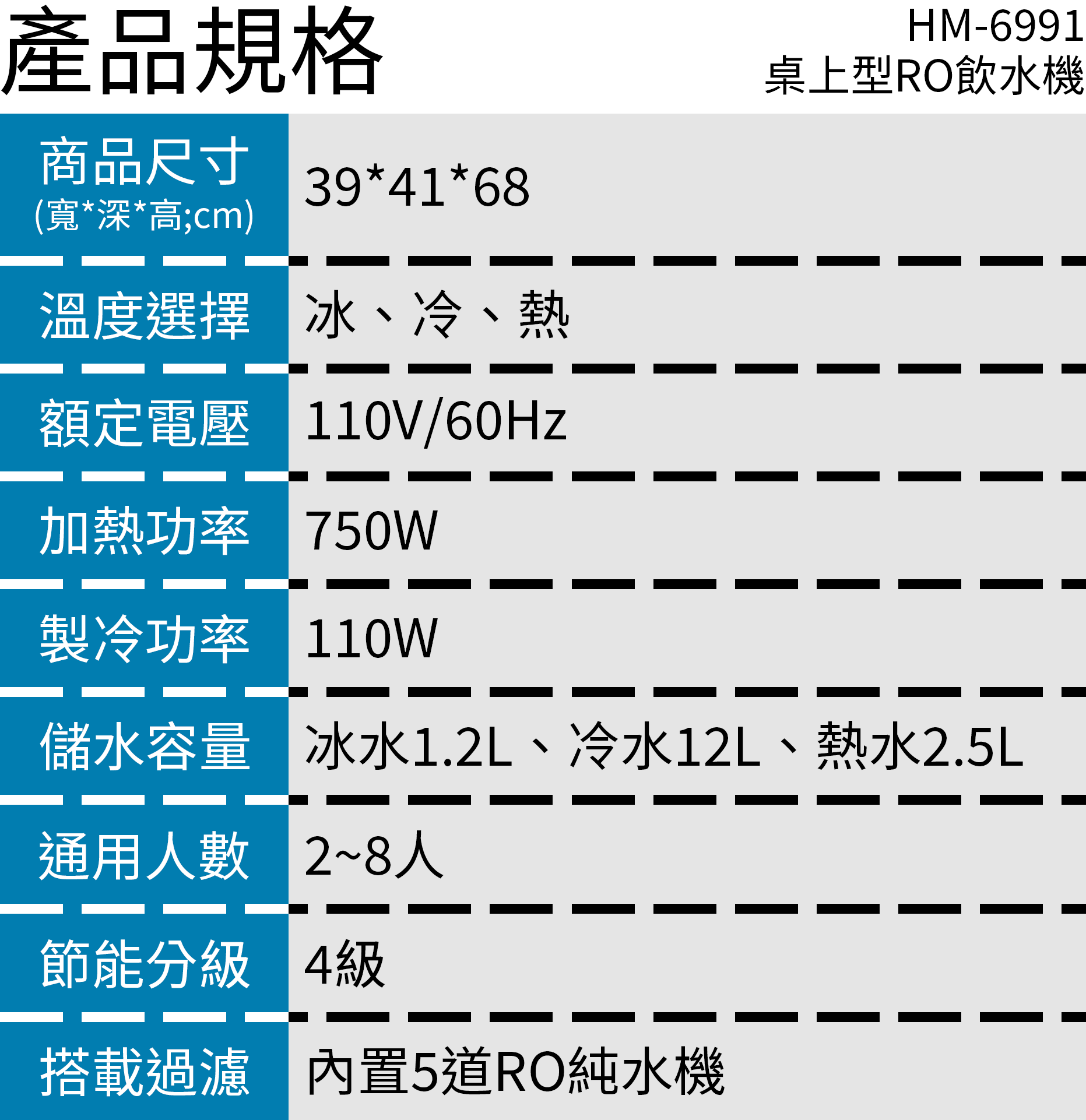 Haohsing豪星 HM-6991 桌上型飲水機 - RO冰冷熱三溫桌上型