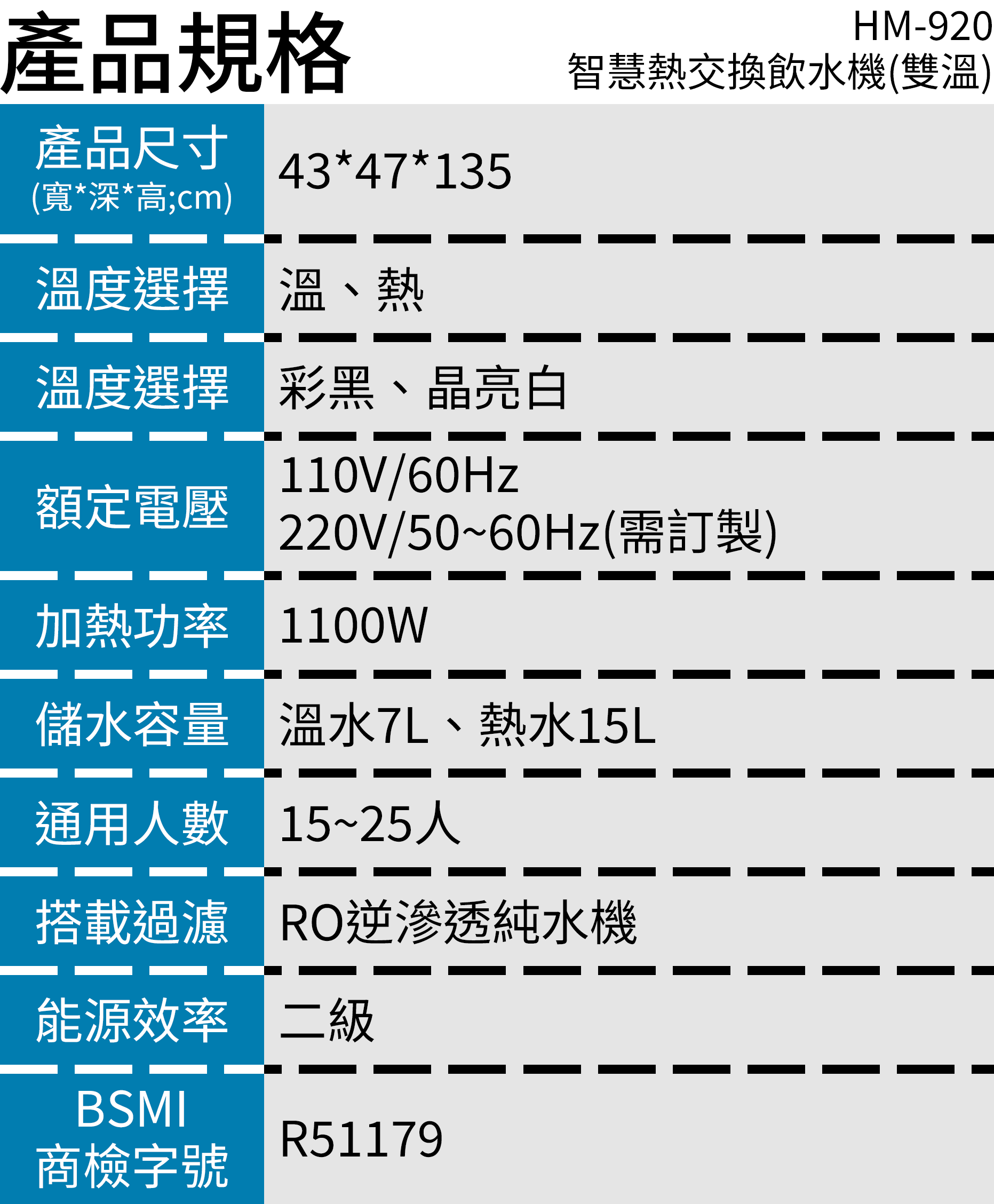 Haohsing豪星 HM-920 智慧熱交換飲水機 -RO溫熱雙溫落地型