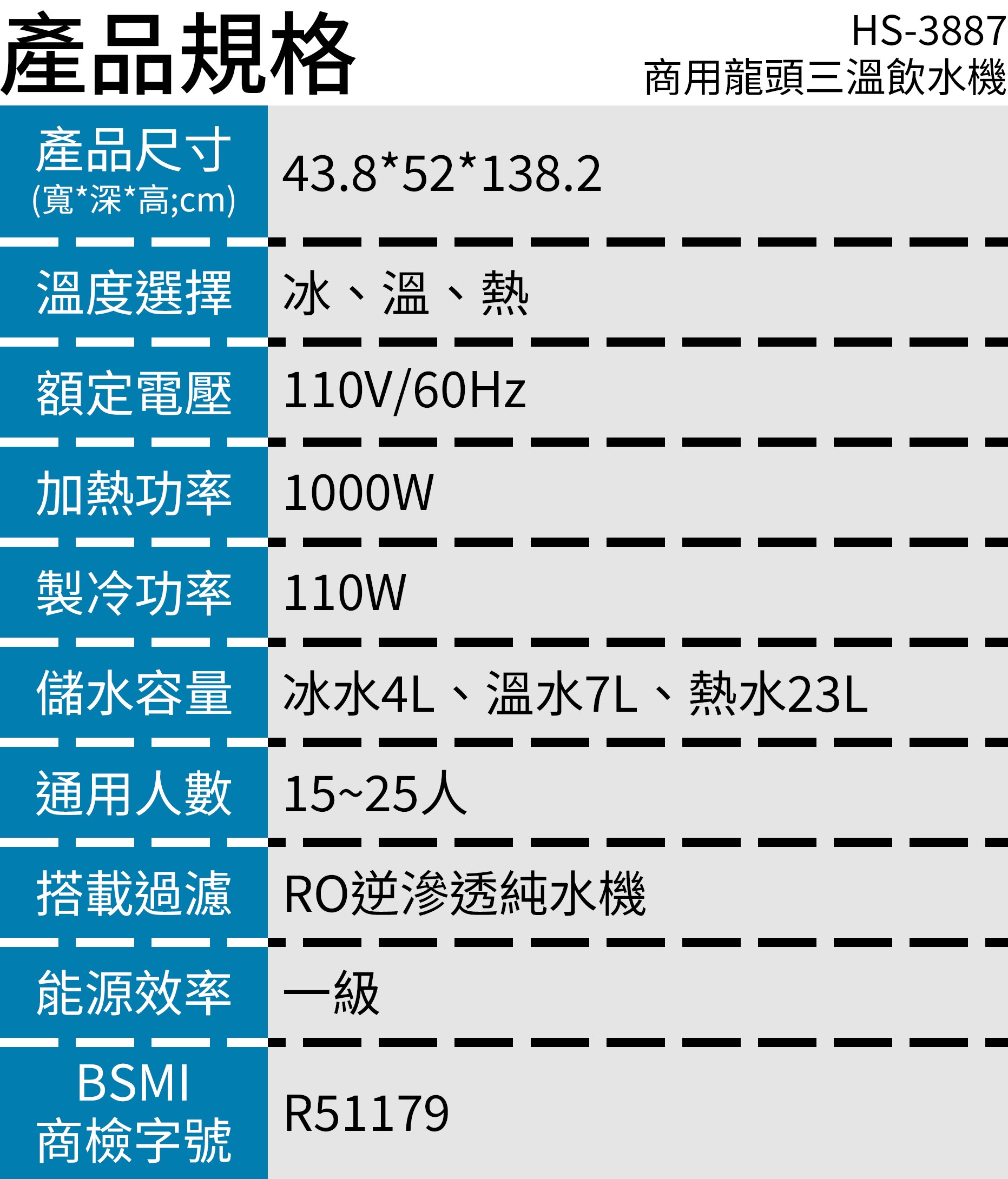 Haohsing豪星 HS-3887 商用龍頭三溫飲水機