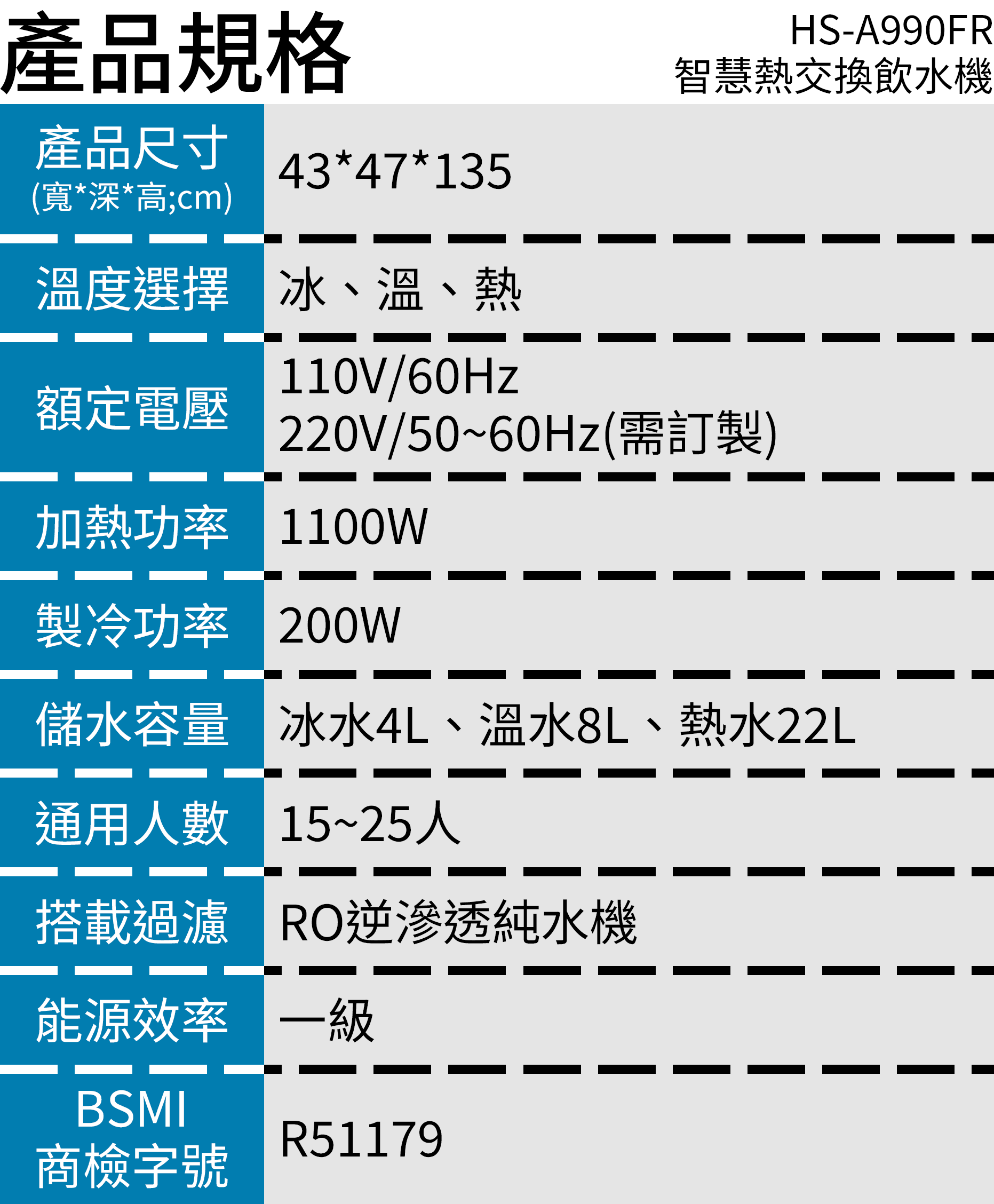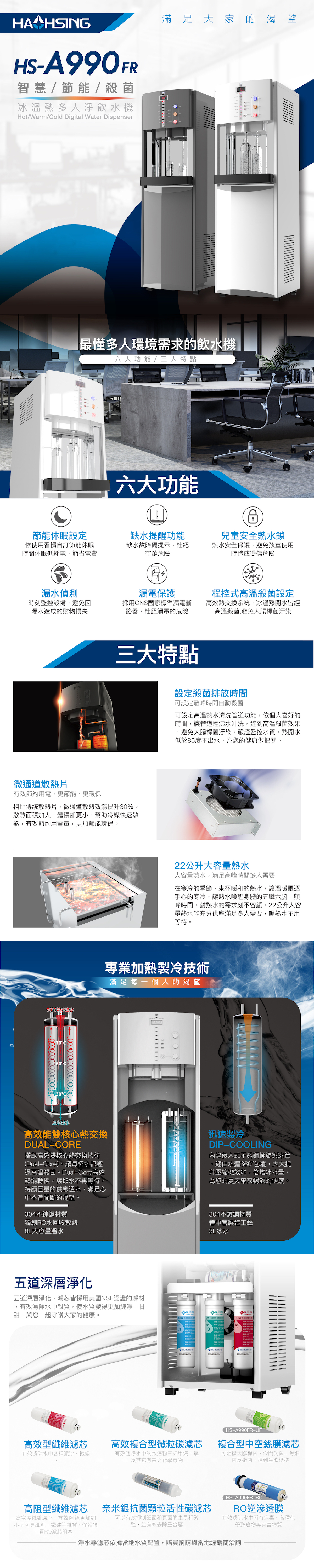 Haohsing豪星 HS-A990FR 智慧熱交換飲水機 -RO冰溫熱三溫落地型