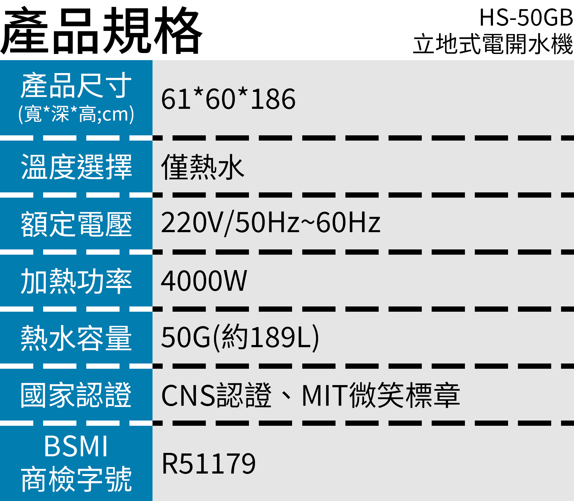 Haohsing豪星 HS-50GB 立地式電開水機