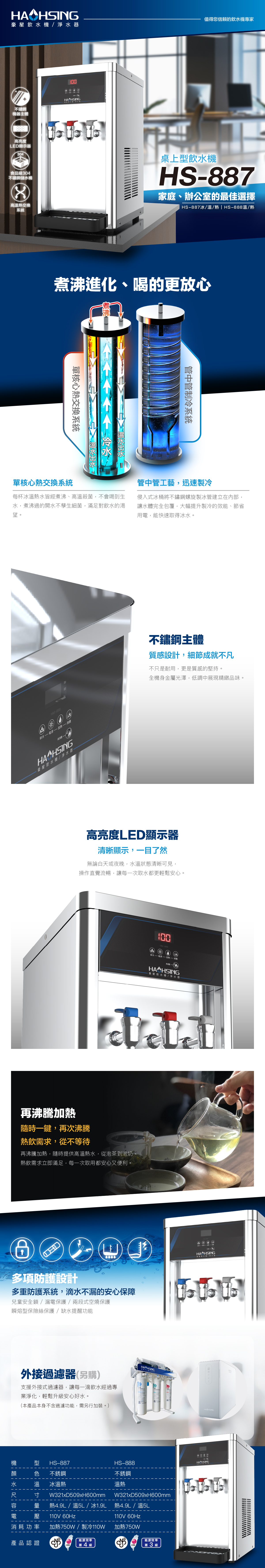 Haohsing豪星 HS-887 桌上型冰溫熱飲水機