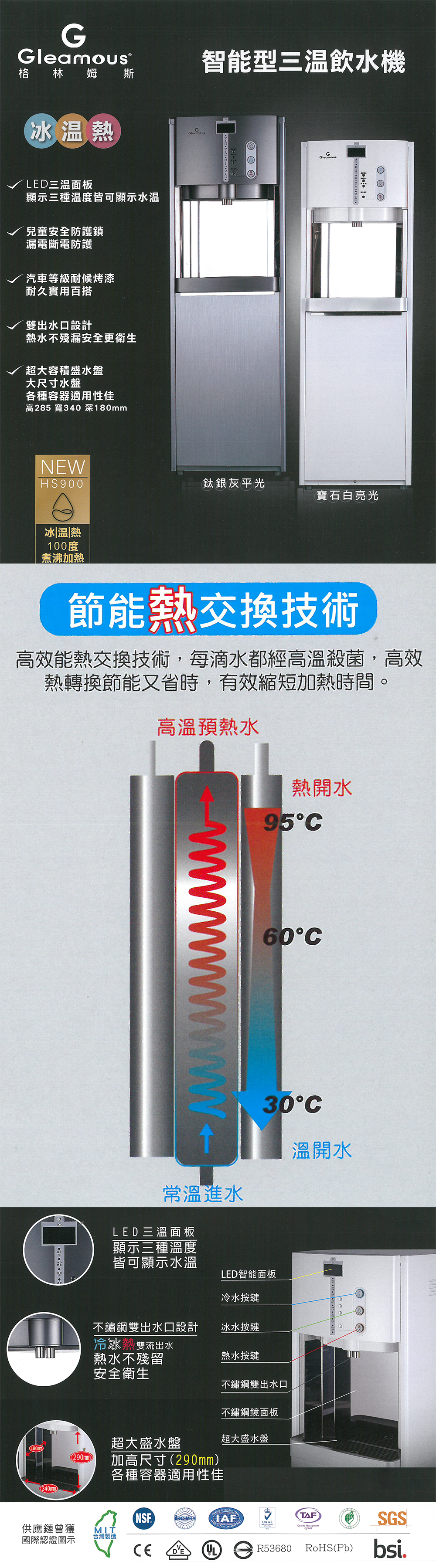 Gleamous格林姆斯(豪昱) HS-900-H 智能型三溫飲水機