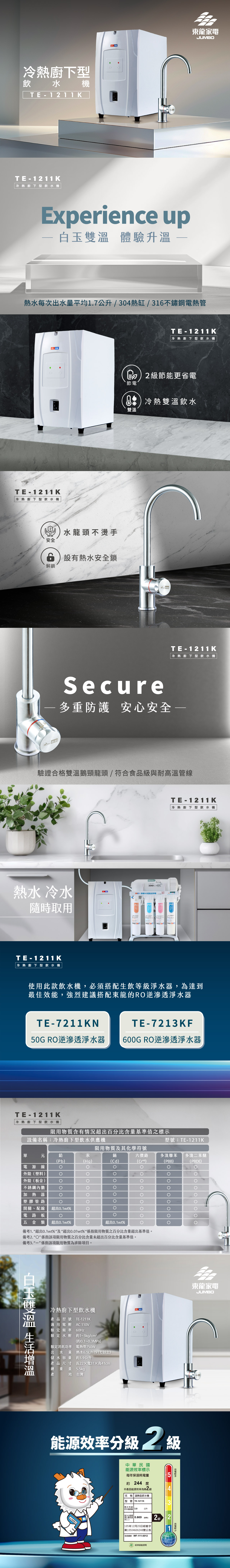 Jumbo東龍 TE-1211K 冷熱廚下型飲水供應機
