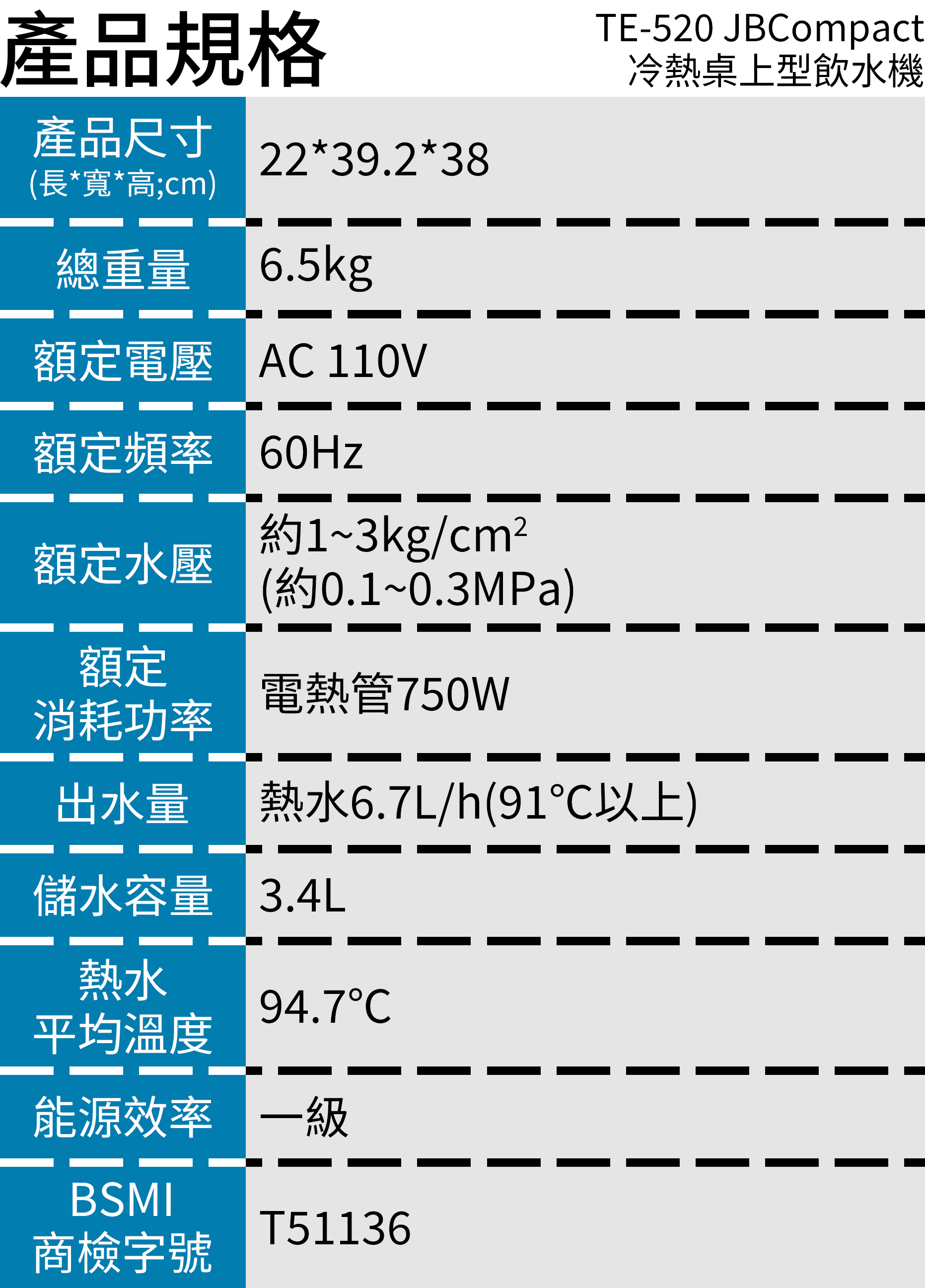 Jumbo東龍 TE-520 JBCompact冷熱桌上型飲水機